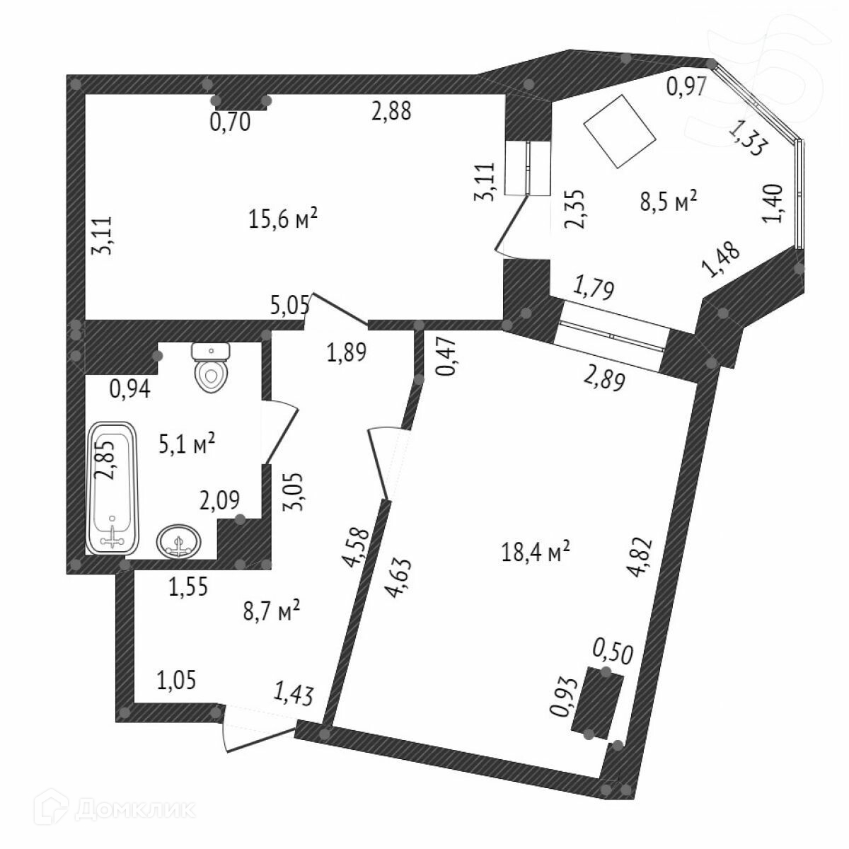 Жилая площадь 18.4 м2