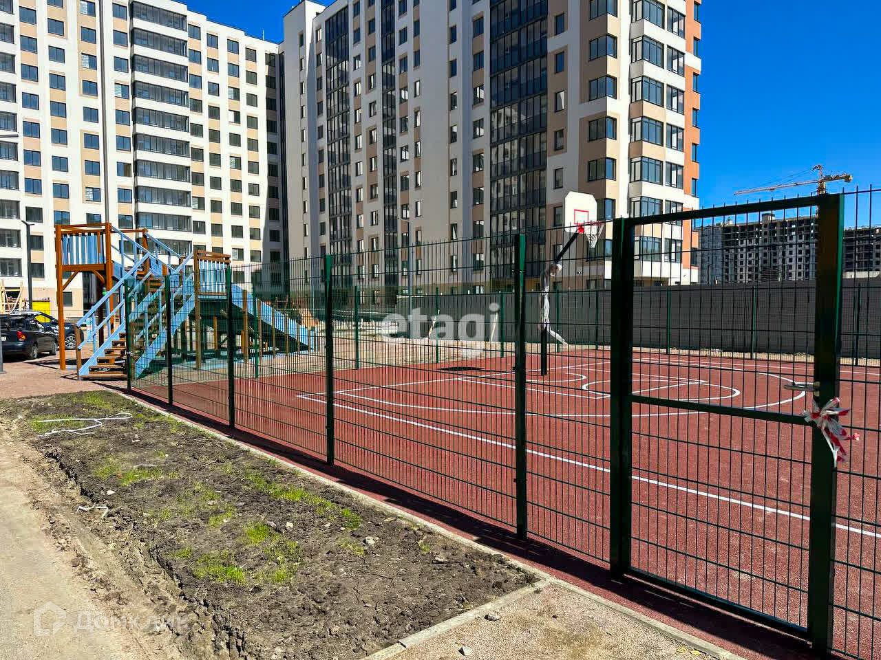 Закрытый двор. Видеонаблюдение. Новая школа(1600мест) и 2 детских сада во дворе дома и рядом строится еще 1. Гипермаркет Лента так же в пешей доступности. 1 этаж весь коммерция, рядом есть подземный паркинг на 270 мест.