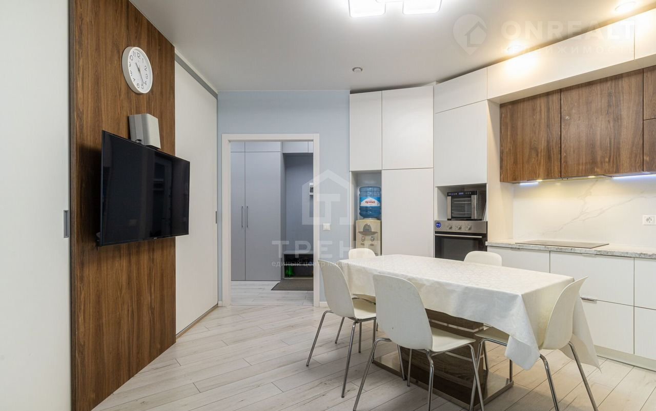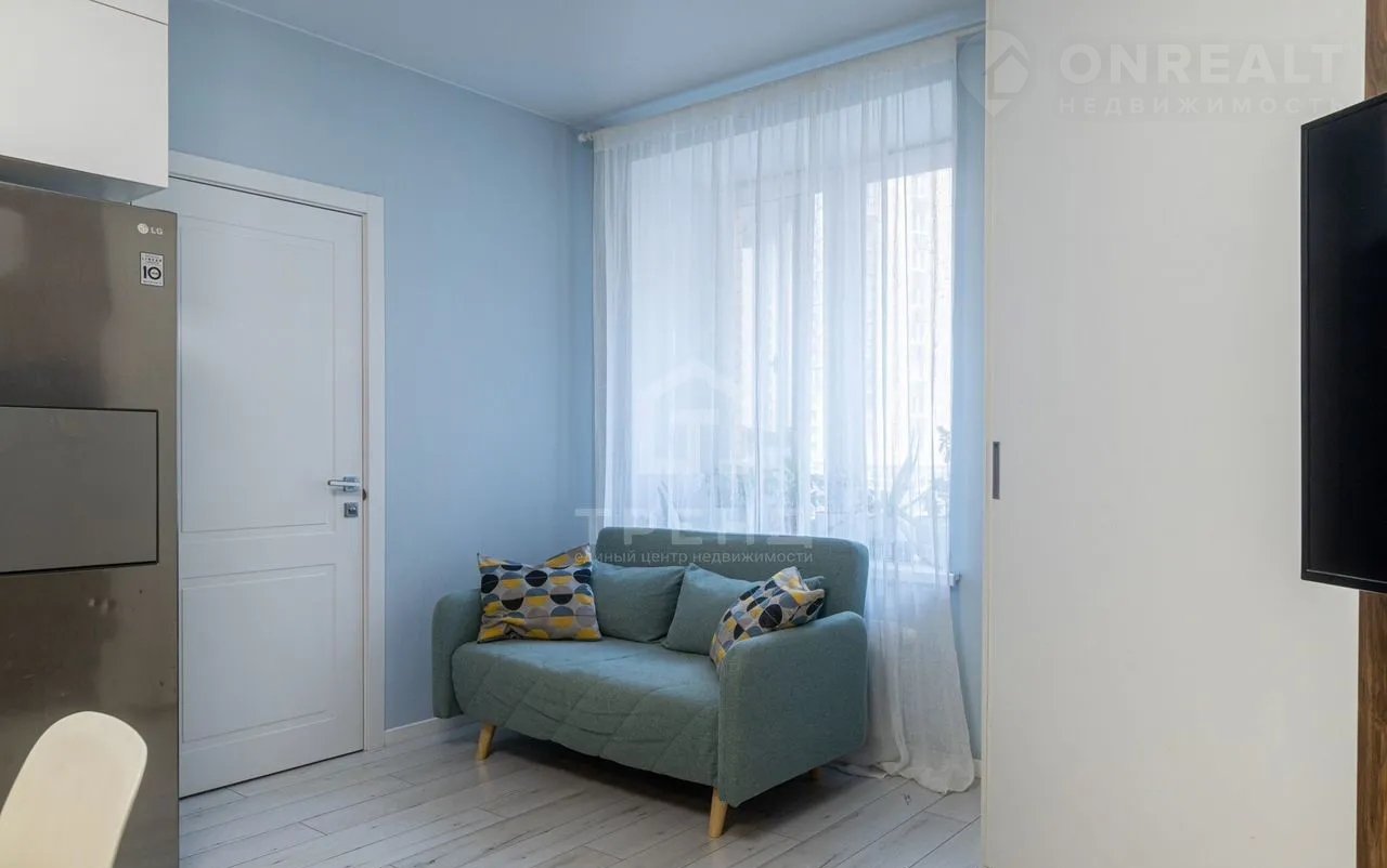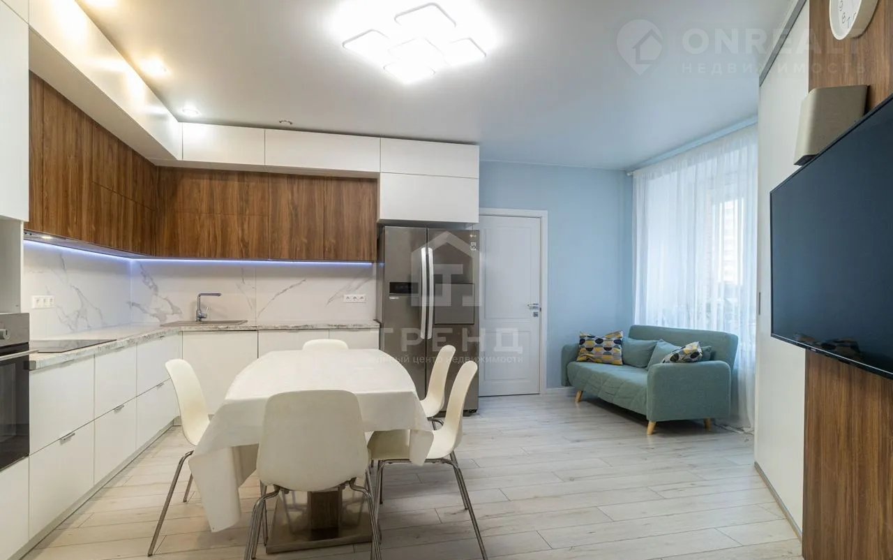 - Просторная кухня-гостиная площадью 21,8 кв.м., остается вся техника.