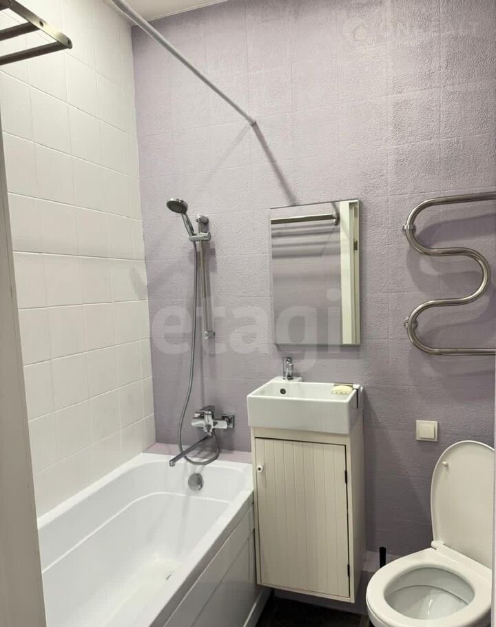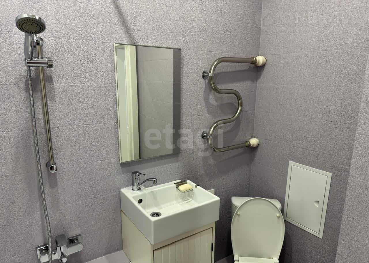 Ванная комната 3,1 кв. м отделана плиткой и микроцементом, устойчивым к влаге.