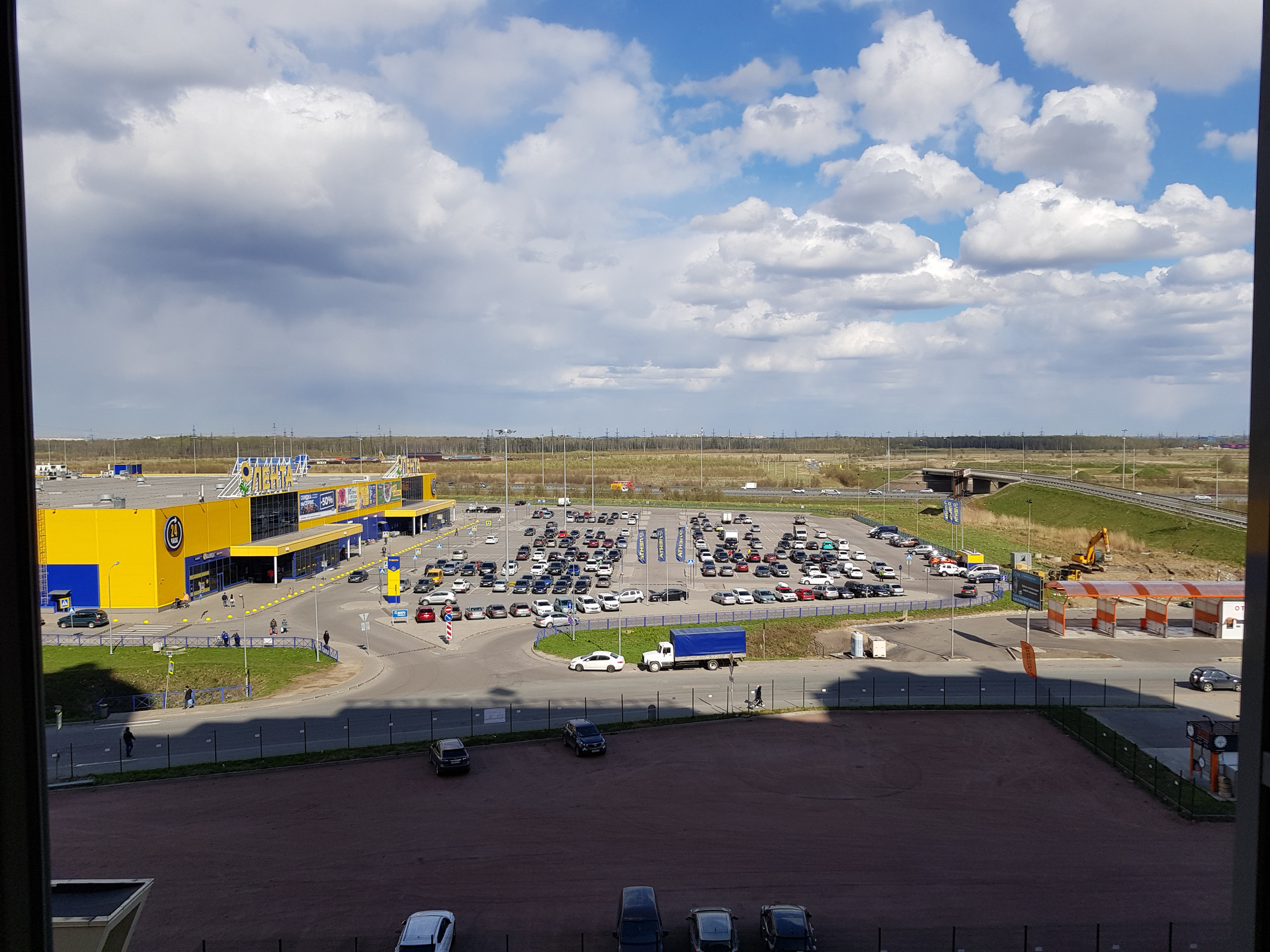 Парк Оккервиль и магазин Лента - 3 минуты ходьбы. До метро - 25 мин пешком или 15 мин на автобусе, 5 мин до КАД.