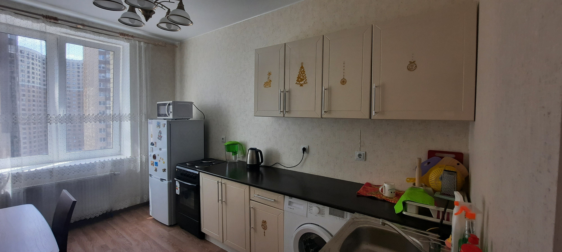 В квартире вся мебель и бытовая техника.
