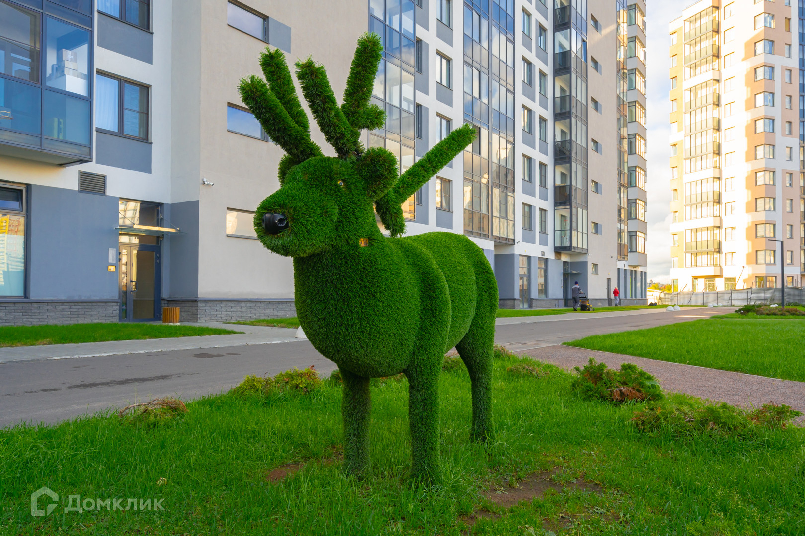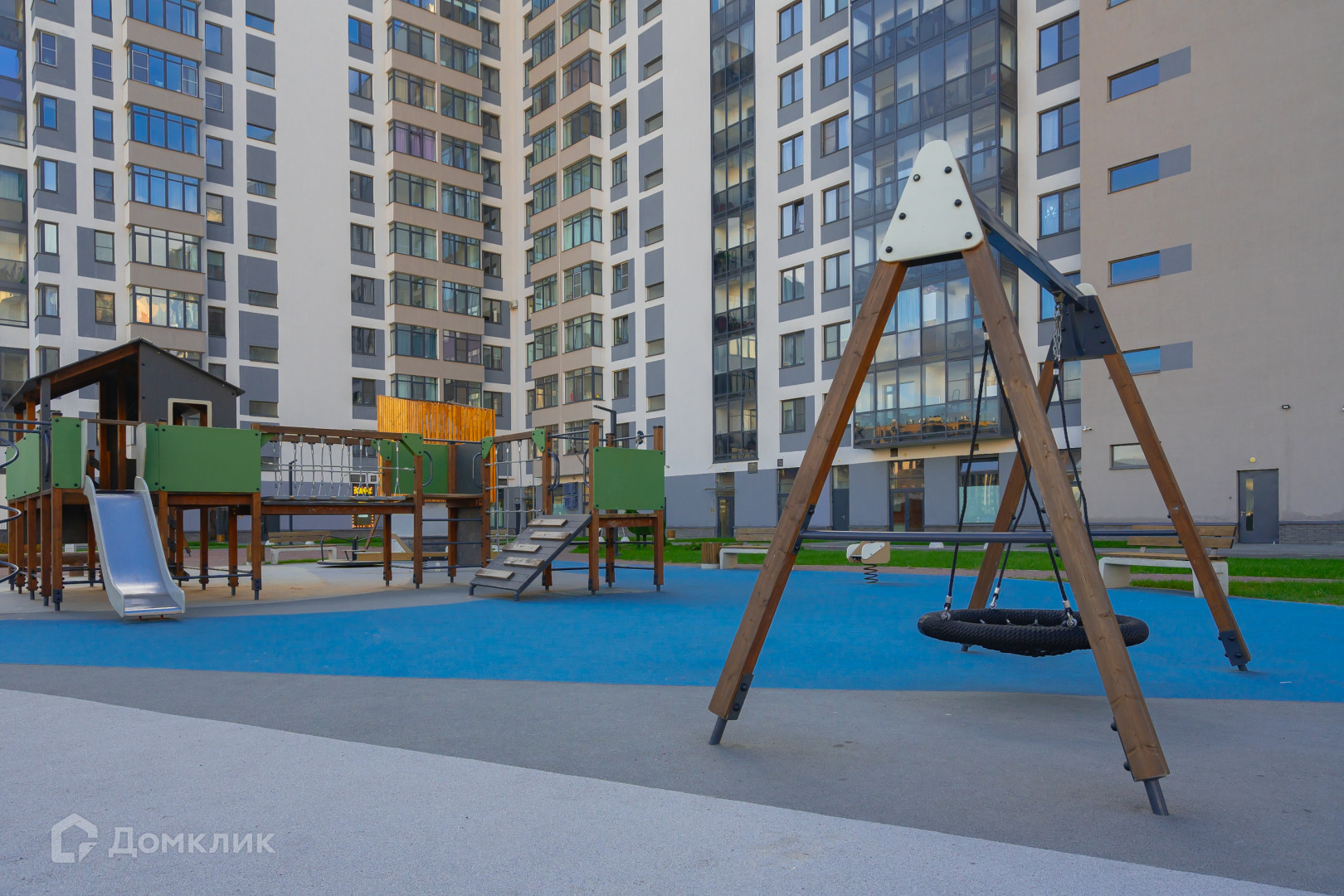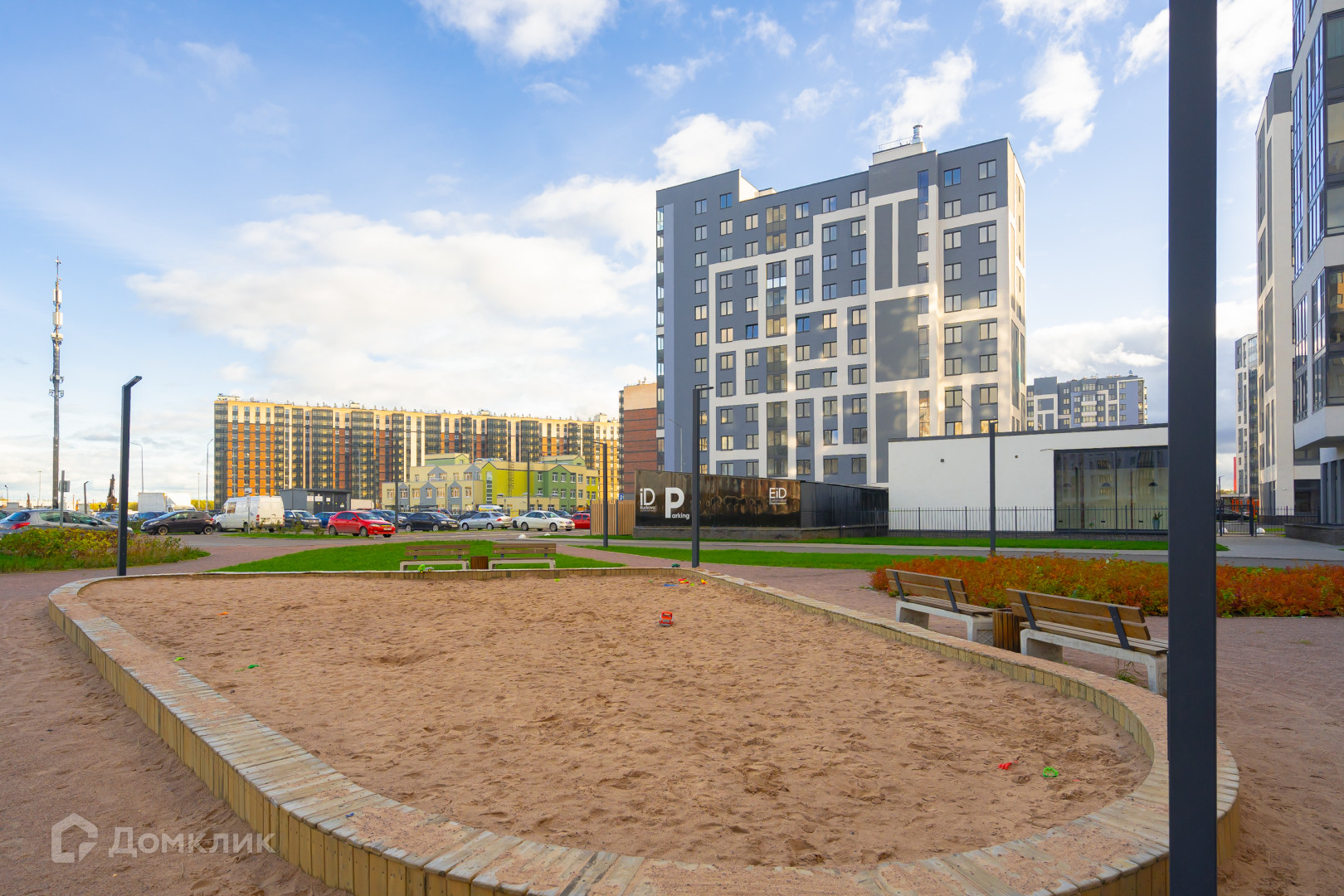 У дома закрытый двор с детской площадкой и выделенной зоной парковки, у парадных проезд техники запрещен, только на разгрузку. Также есть подземный паркинг с возможностью аренды машиноместа, вход с парадной. В парадной также есть отдельная колясочная и два грузовых лифта. Вокруг дома нет плотной застройки, с одной стороны озеро и зеленая зона, с другой стороны детский сад и школа. В 5 минутах ходьбы большой парк с протекающей через него речкой «Оккервиль». В доме установлена система умный дом, показания счетчиков сдавать не нужно, также стоит домофон с видео камерой.