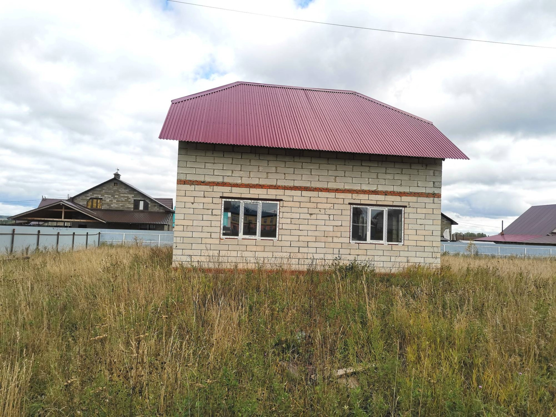 Дом из газоблока, перекрытия деревянные, окна пвх, коммуникации рядом с домом.