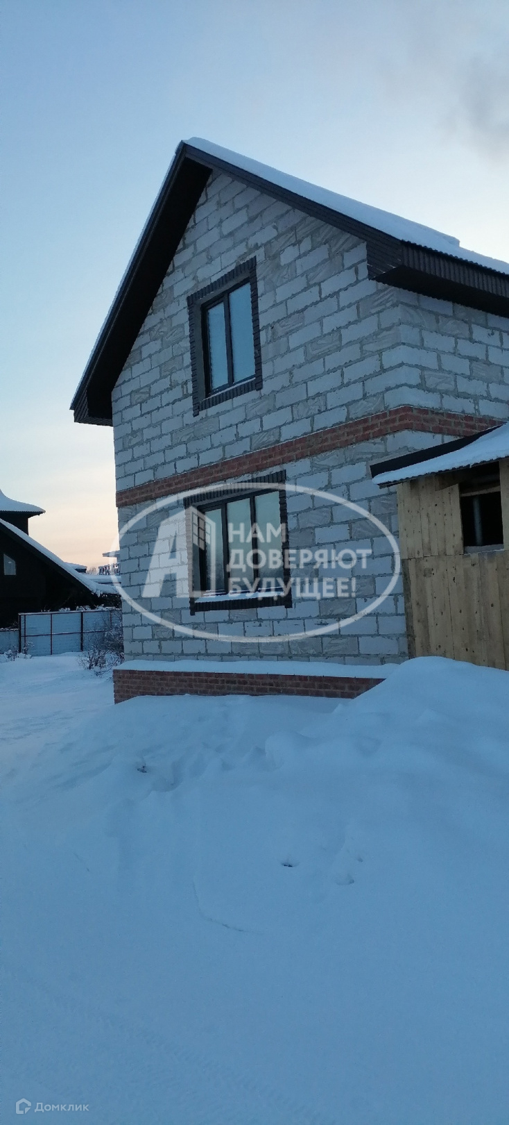года постройки. Фундамент ленточный. Пол и потолок ж/б плиты, первый этаж газоблок + кирпич. Канализация- бочка 4 м3. Водопровод центральный. Ограда 150 М2. Баня. (Номер объекта в базе 319766)