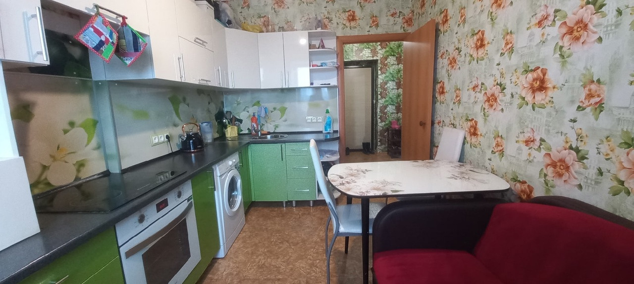-Большая кухня-10 кв.м., комната-22 кв.м., прихожая просторная, санузел совмещённый.
