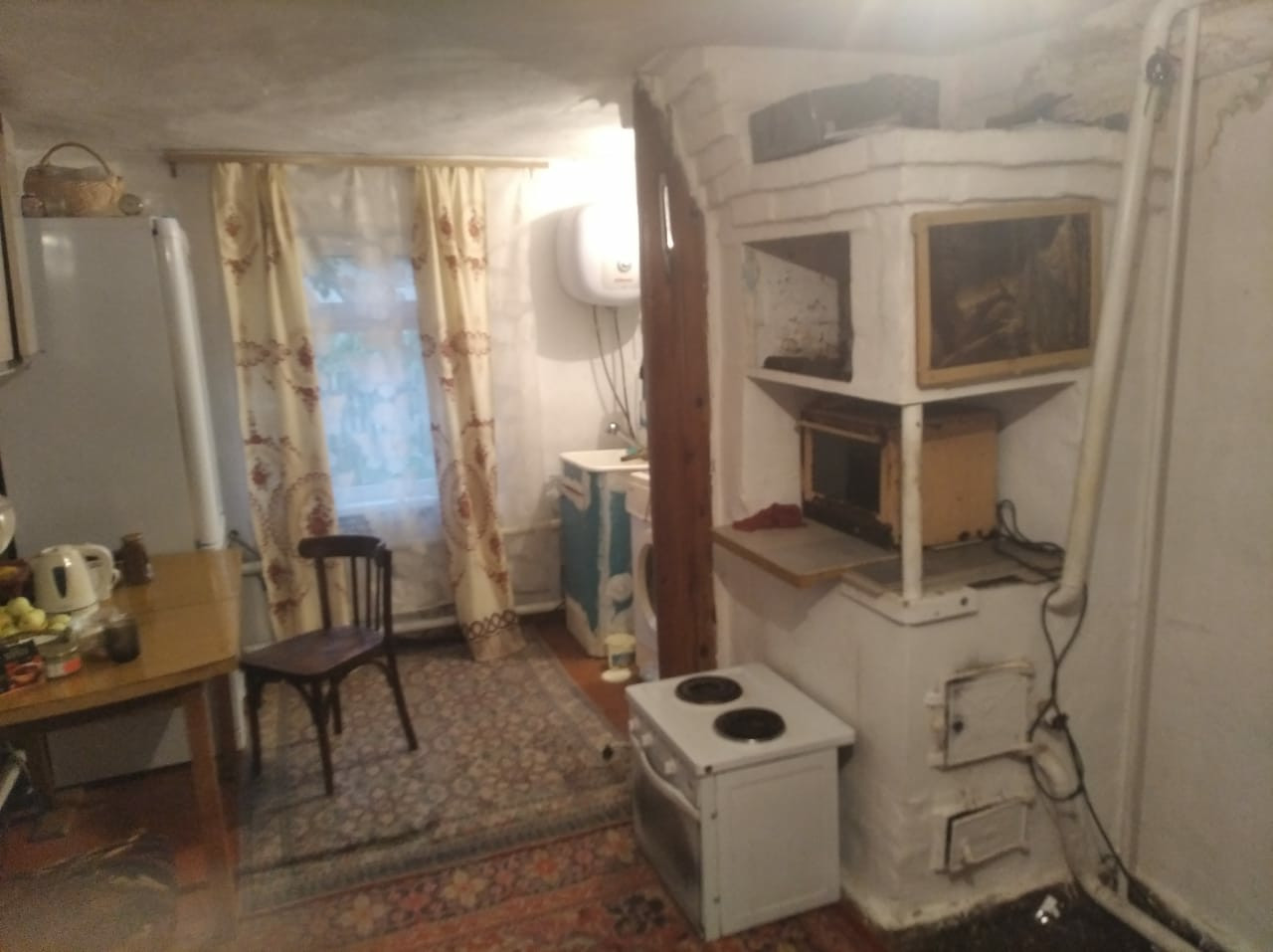 в доме вода горячая и холодная круглый год, своя скважина,  канализация,  окна пластиковые , отопление по всему дому , в доме кухня,  и 2 комнаты,  есть баня , участок большой разработанный,  полностью готов для проживания, требуется только косметический ремонт .