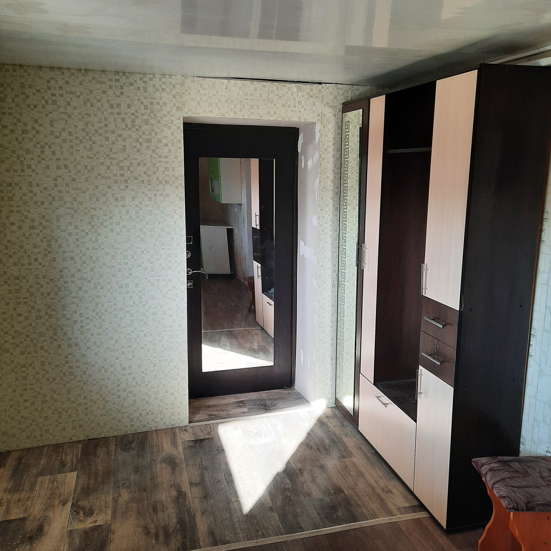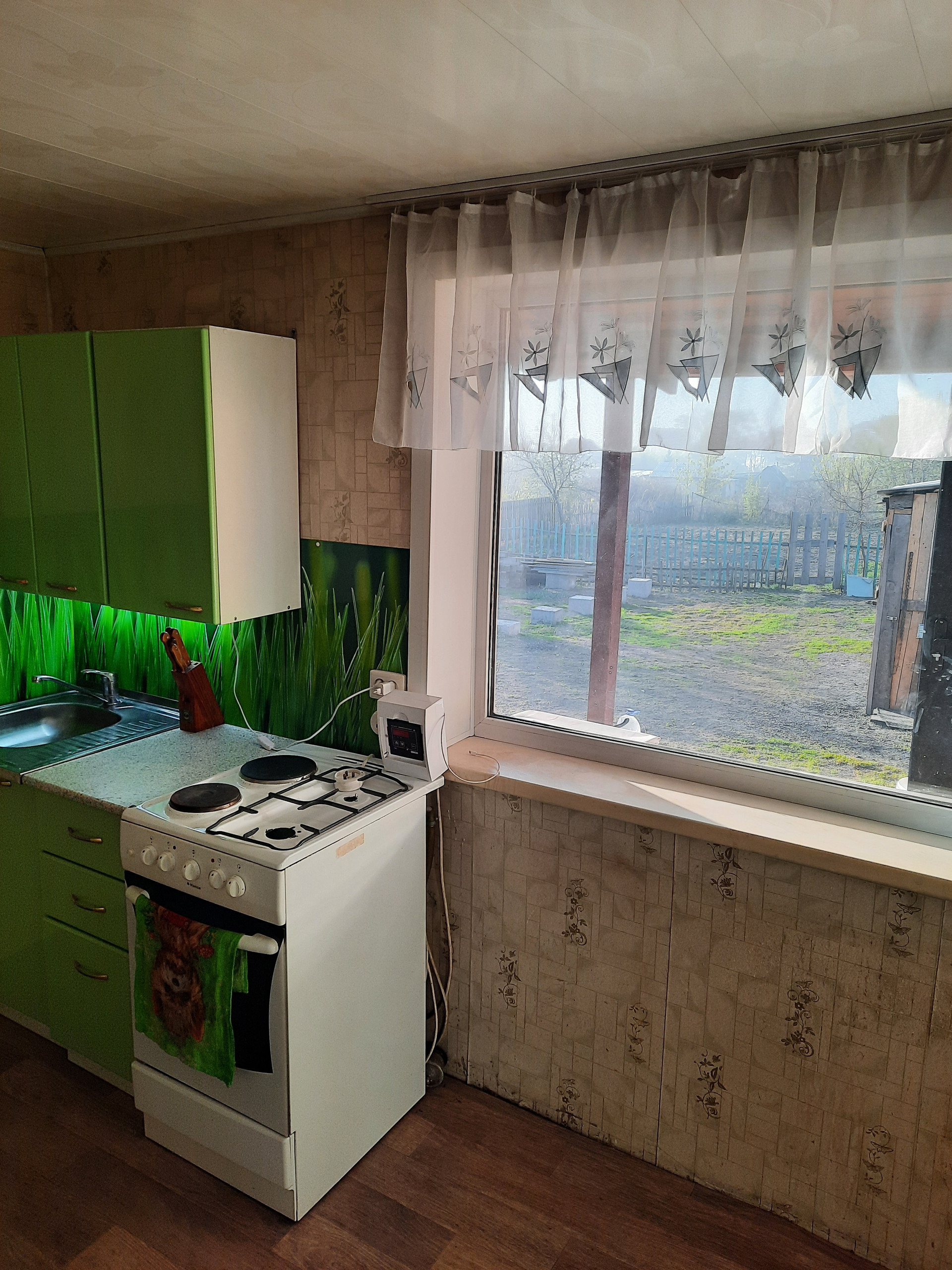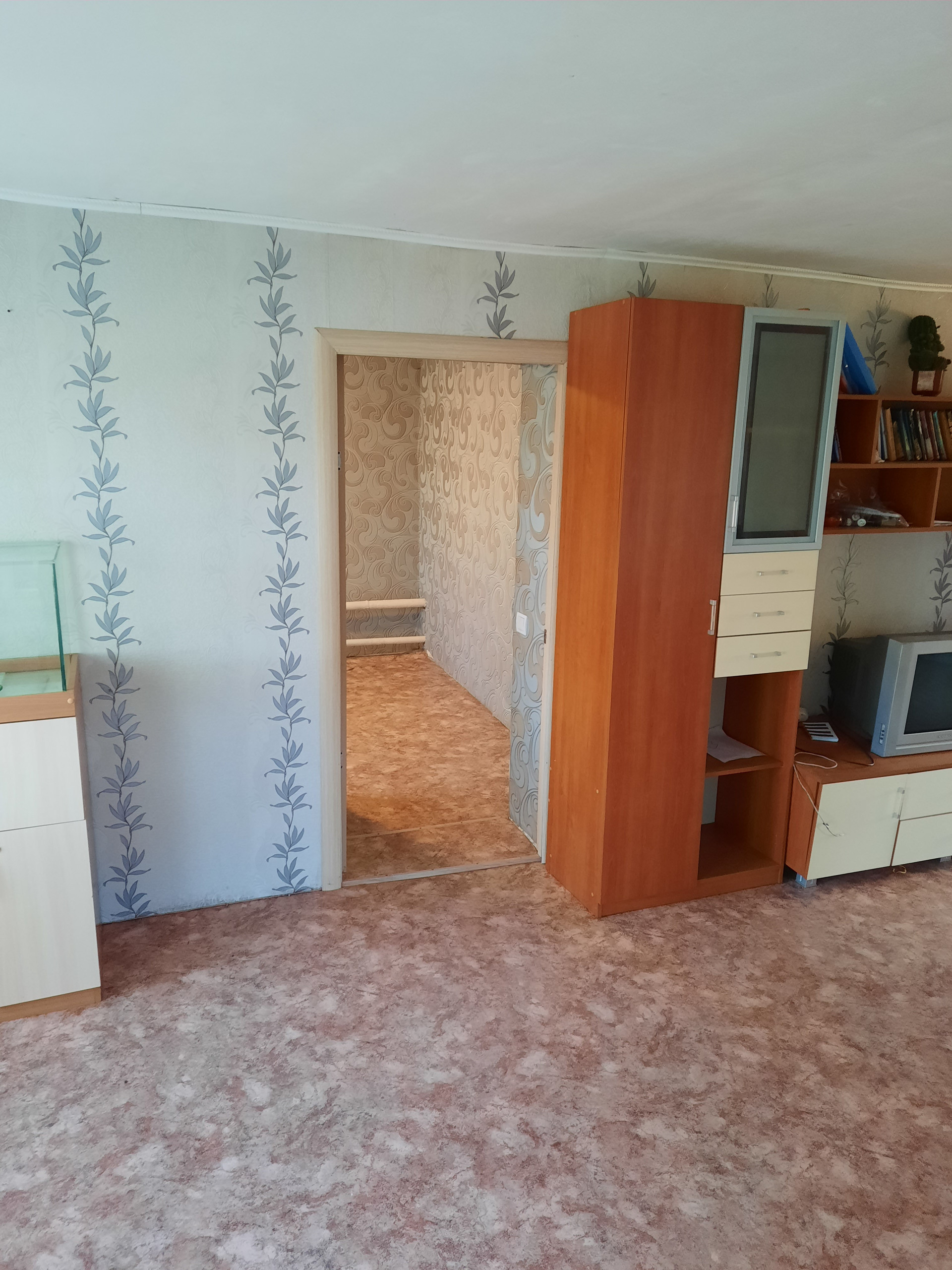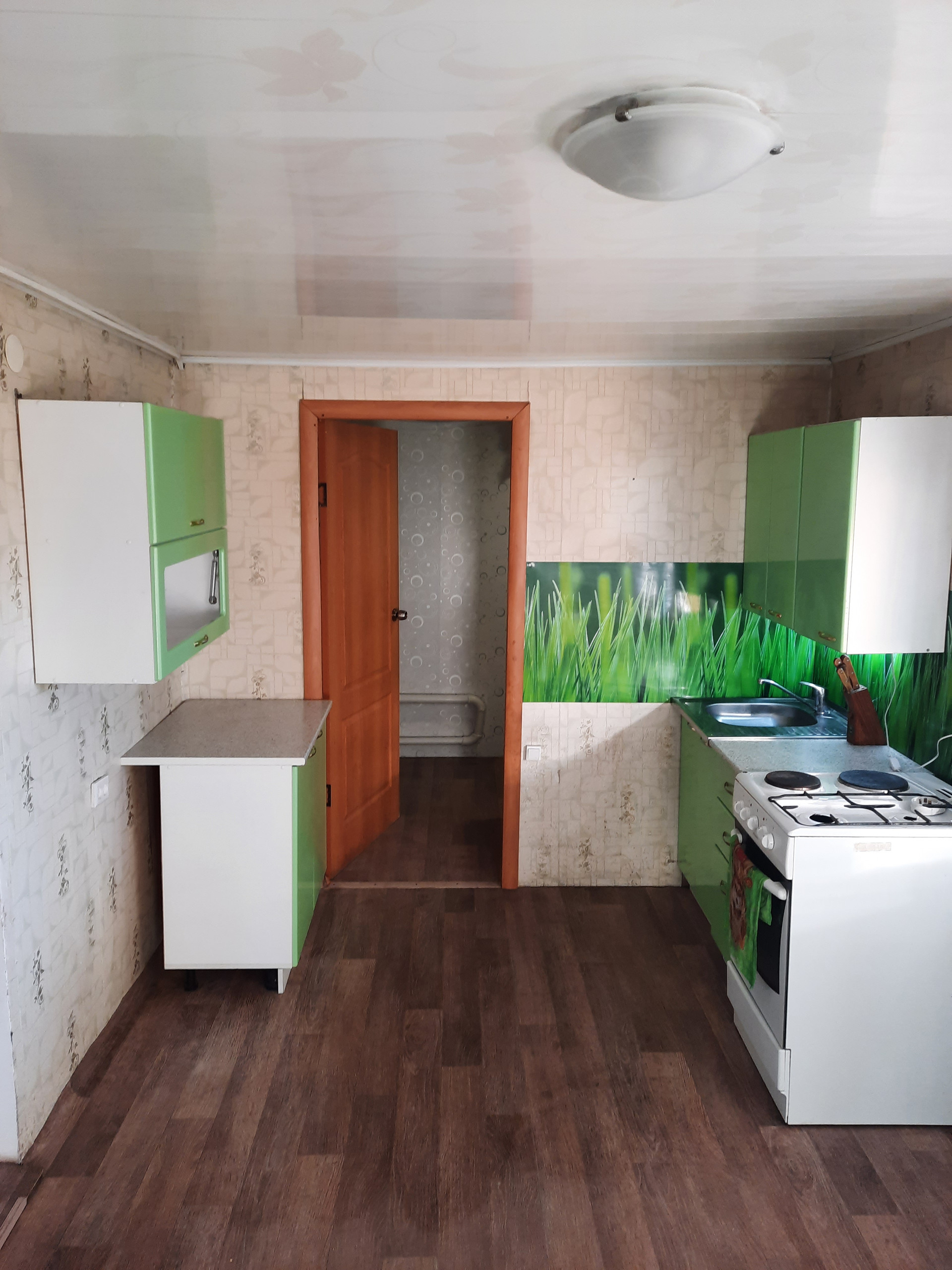 Покупателям остается кухонный гарнитур, электроплита. По договоренности может быть оставлена часть мебели.