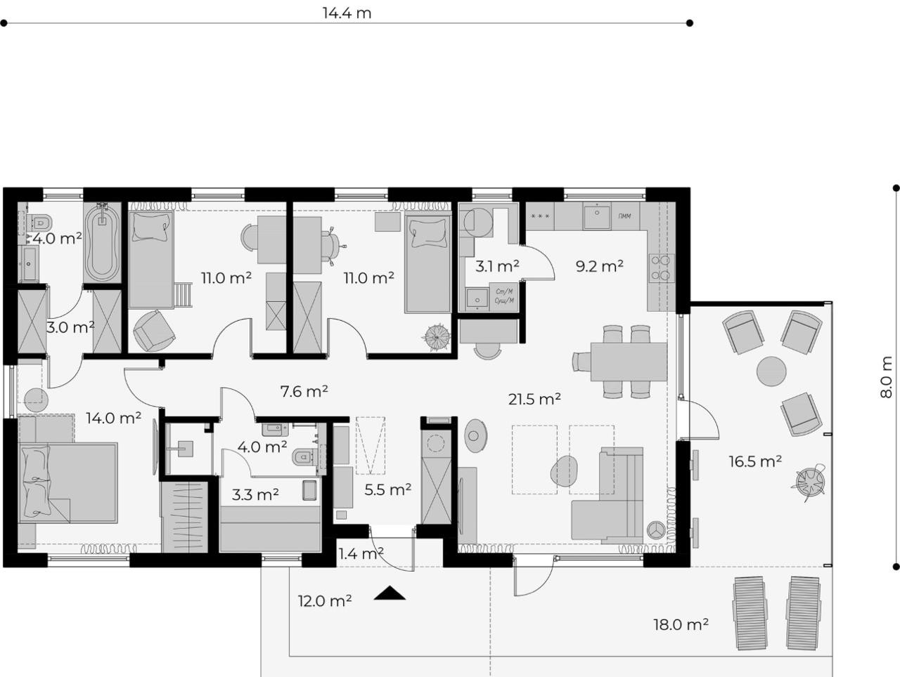 Общая площадь 136 м2