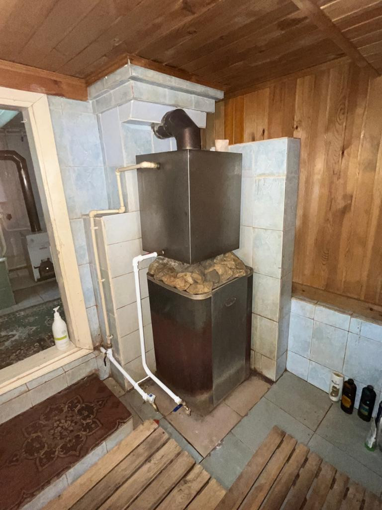 Баня (на дровах). Санузел. Ванная комната. Кухня. Столовая. 3 спальные комнаты. 1 большая гостиная  28 кВ. М.  Высота потолков 2.95м