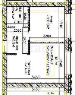 Общая площадь 38.8 м2