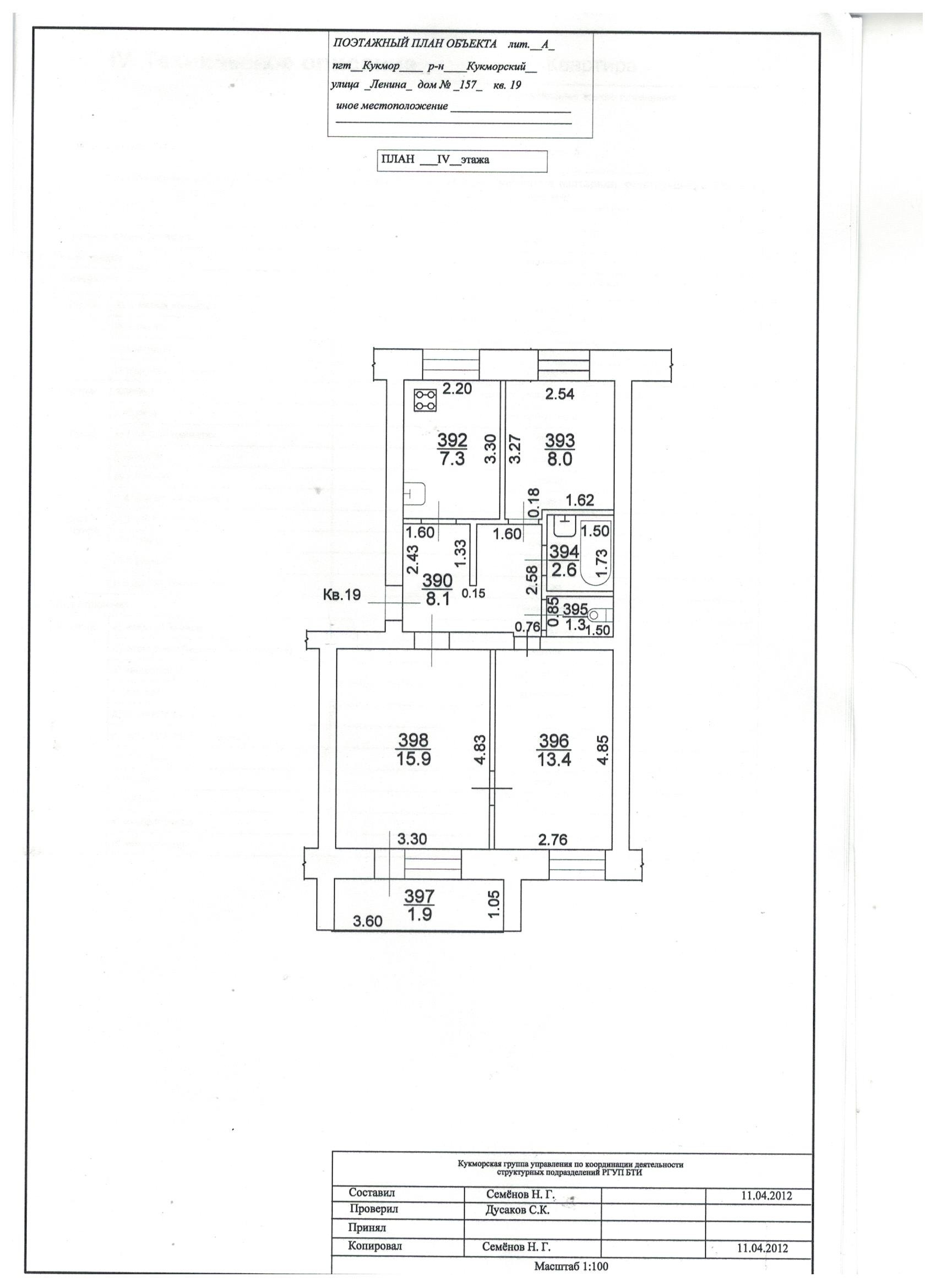 3-комнатная квартира, 56.6 м2, этаж 4 / 5, на продажу в Кукморе, улица Ленина, 157