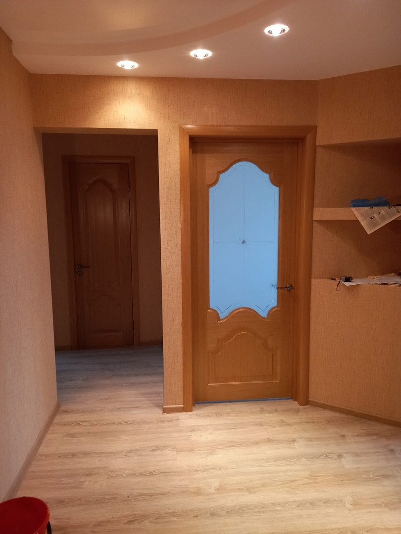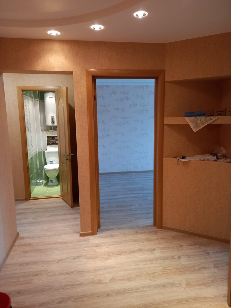 В квартире заменены все инженерные коммуникации(сантехника, электрика, отопление), натяжные потолки, ламинат, плитка.