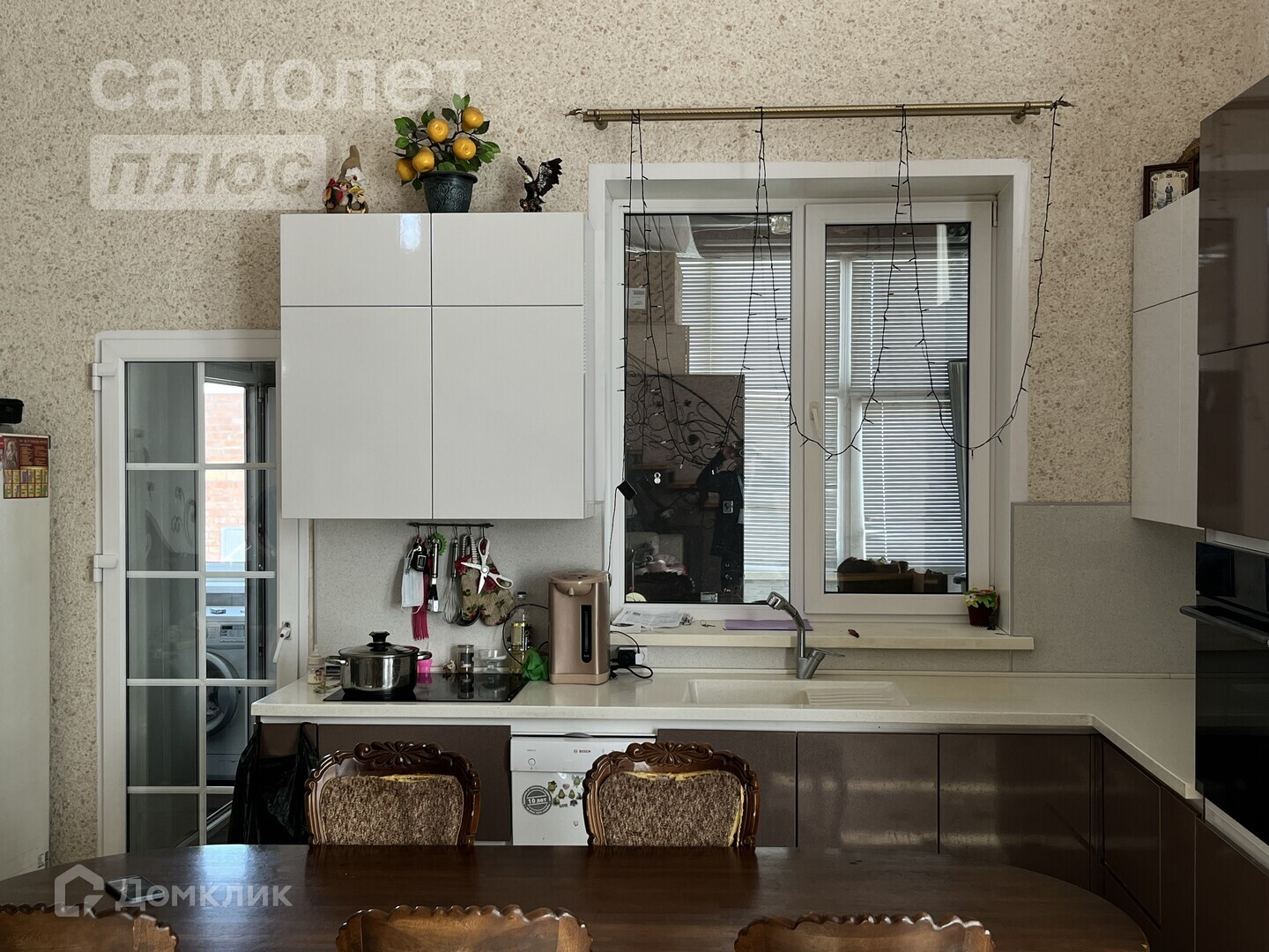 Кухня-гостиная оснащена современным освещением и системой кондиционирования. Кухонный гарнитур выполнен из качественных материалов и оборудован всей необходимой техникой.