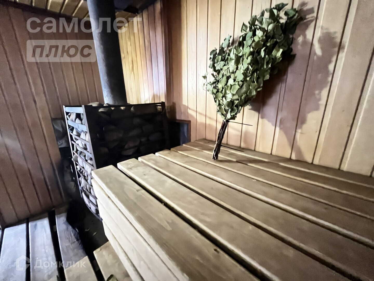 В доме есть просторная кухня-гостиная, гостевой санузел, прихожая с выходом в гараж, котельная и гараж на два автомобиля. Также имеется капитальный сухой погреб со стеллажами и хорошая терраса. Баня с комнатой для отдыха станет приятным дополнением.