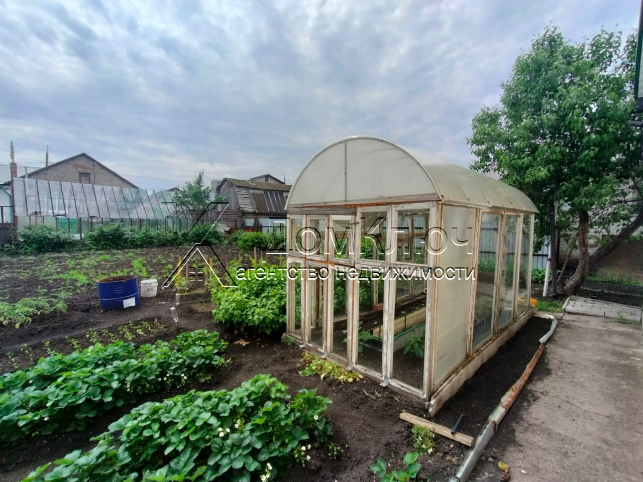 Есть гараж на 2 машины, погреб, теплица, баня с дровником, ухоженный участок с насаждениями.