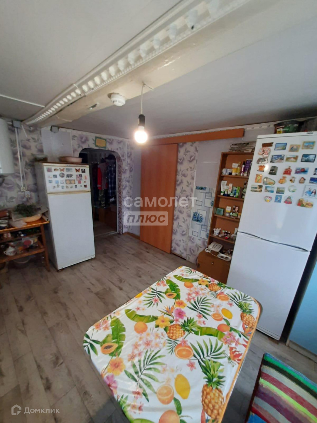 В доме просторная кухня, большой зал, две небольшие спальные комнаты и санузел. На полу уложен качественный линолеум, входная дверь металлическая, межкомнатные двери новые.