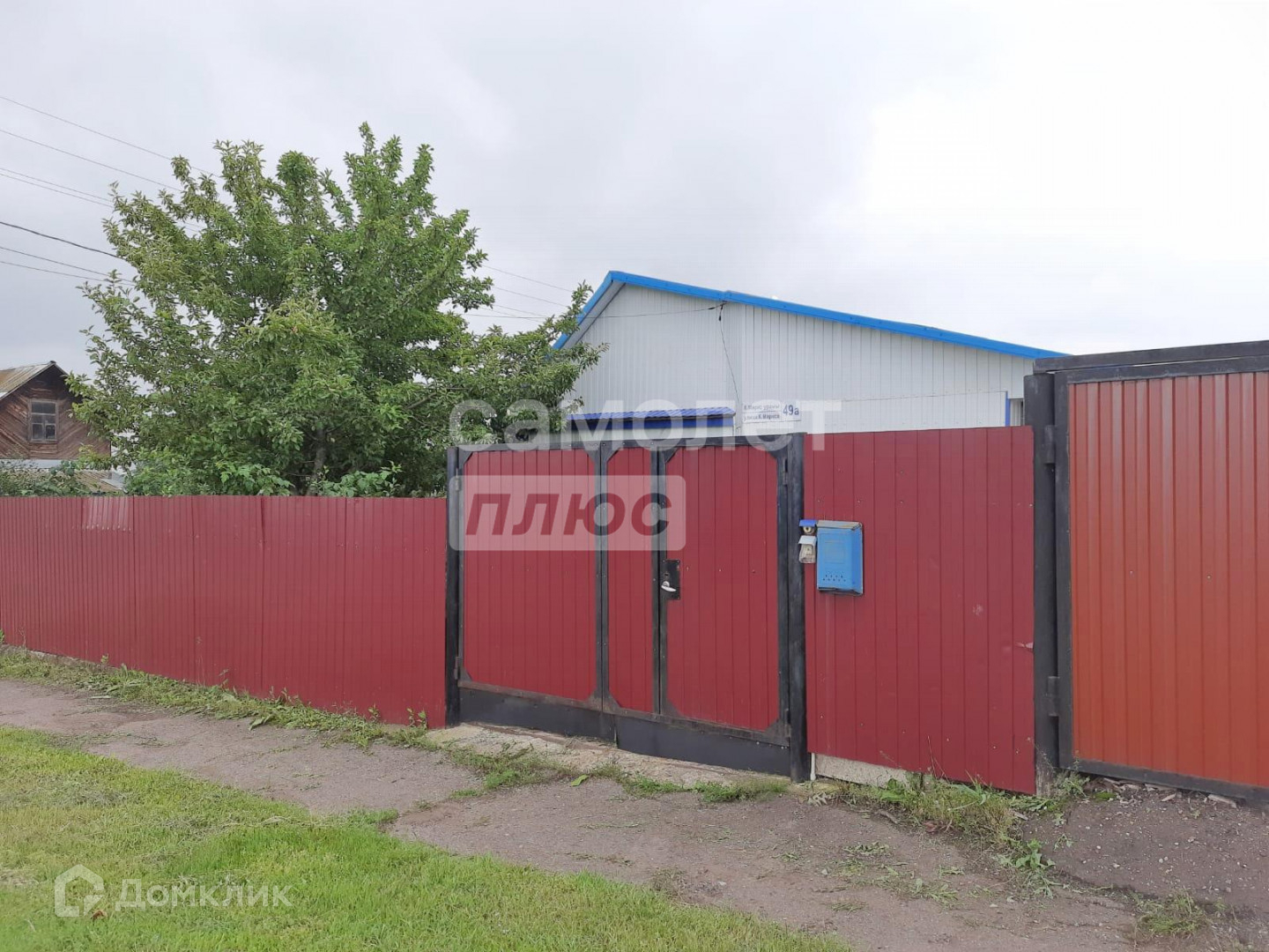 Территория участка огорожена забором из профлиста и штакетника.