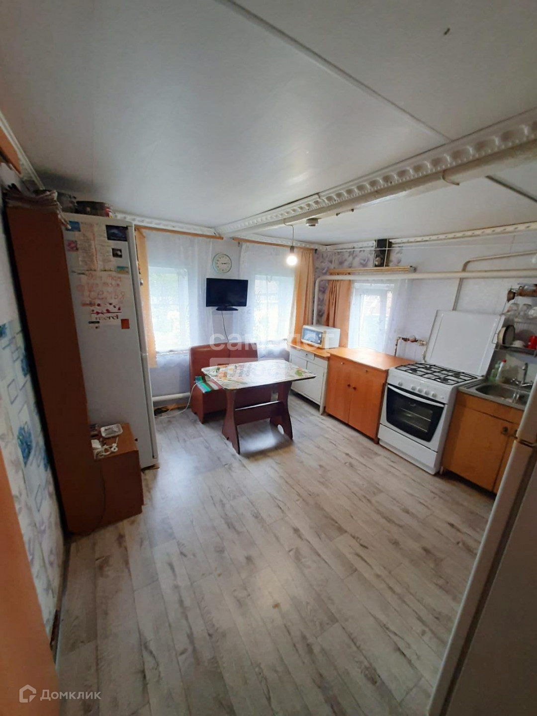 Дом деревянный,пристрой из кирпича-утеплен и обшит сайдингом, крыша покрыта профлистом, установлены окна ПВХ, в санузле и коридоре уложен теплый пол. К дому пристроен крытый холодный коридор по которому можно дойти до бани.