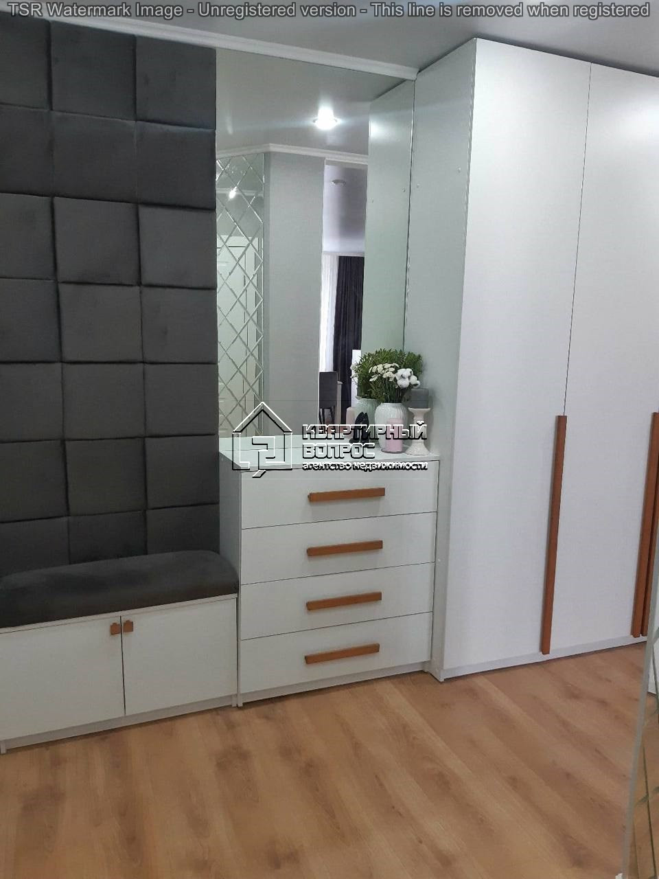 Большая гардеробная, много мест хранения в квартире.