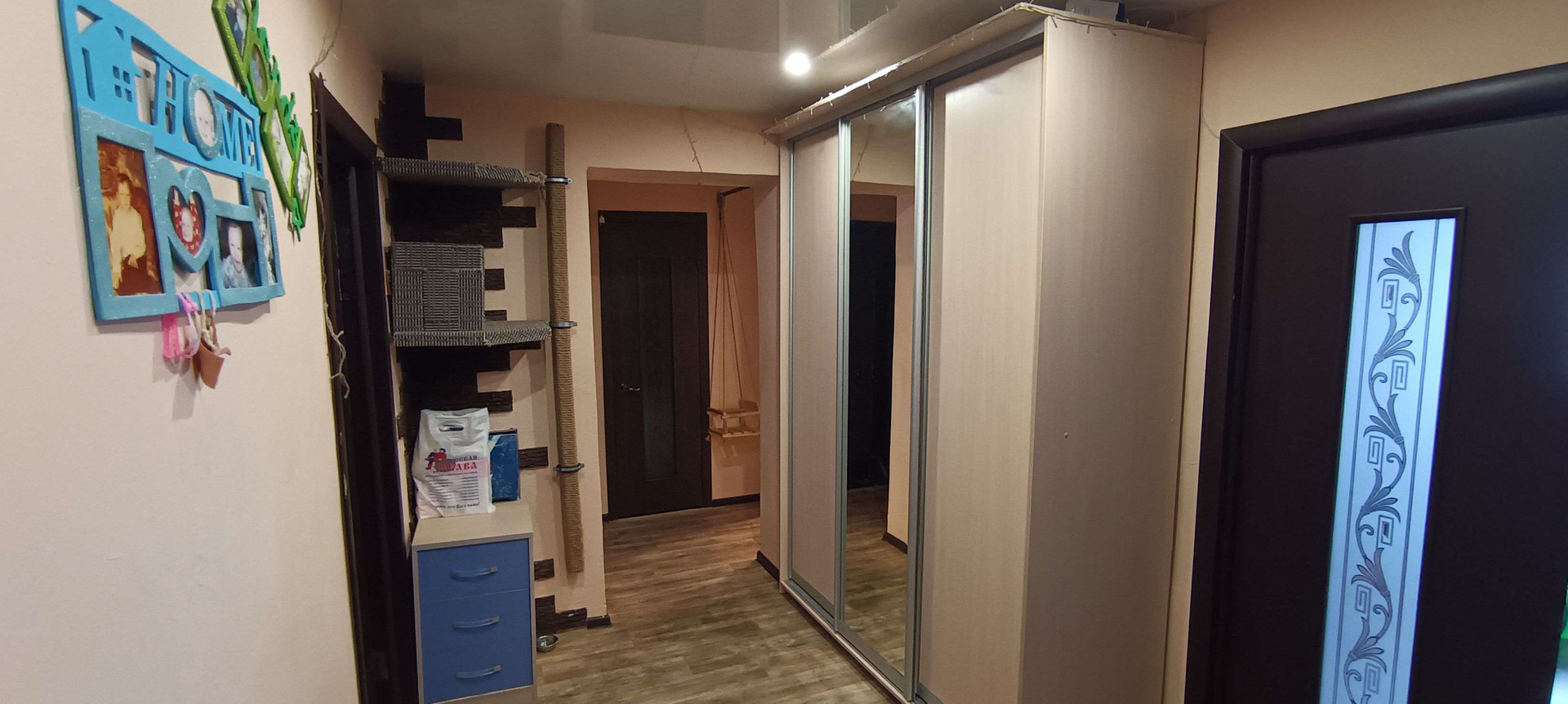 Есть отдельная гардеробная комната, кухня и зал объединены в просторную гостиную (все узаконено и оформлено). Установлены сплит-система, ванна с гидромассажем, водонагреватель воды на 80 литров, посудомоечная машина, духовой шкаф и индукционная варочная поверхность. Лоджия и все окна ПВХ. Натяжные потолки во всех комнатах. Кухня и все шкафы остаются покупателю. В шаговой доступности 2 школы, 3 детских сада, 2 торговых центра, Сапсан-Арена и куча магазинов. Остановки общественного транспорта прямо под окном. Просторная парковка во дворе.