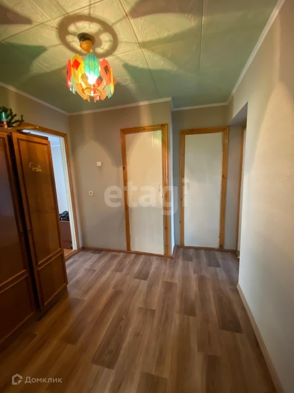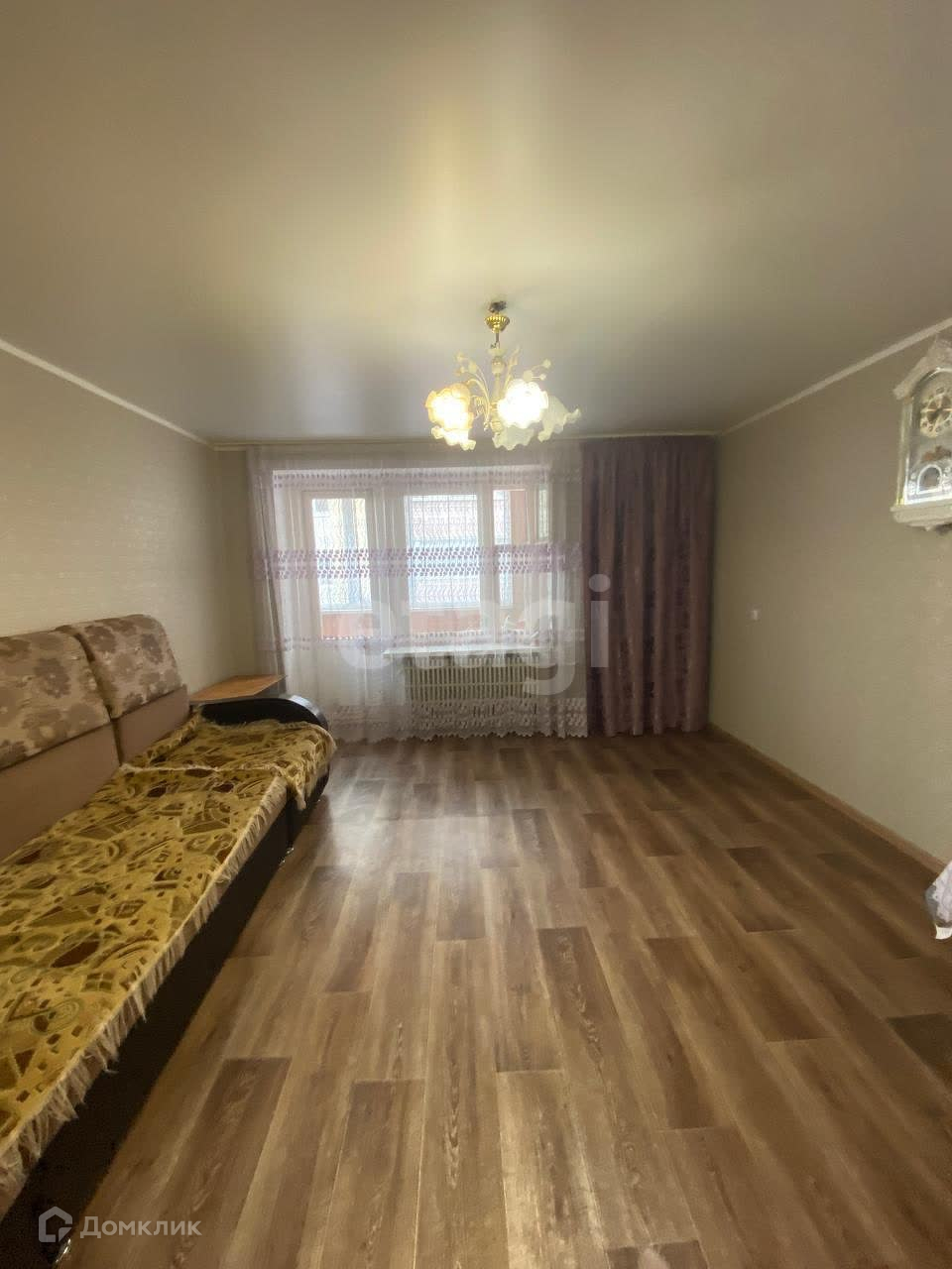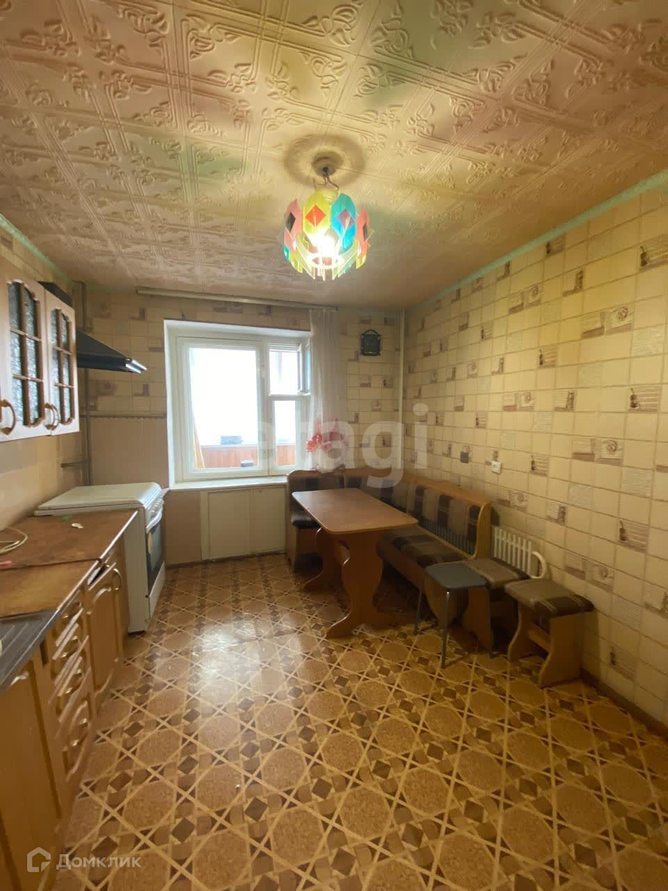 Окна установленны пластиковые, на полу лежит хороший линолеум. Потолки натяжные, балкон застеклен и утеплен.