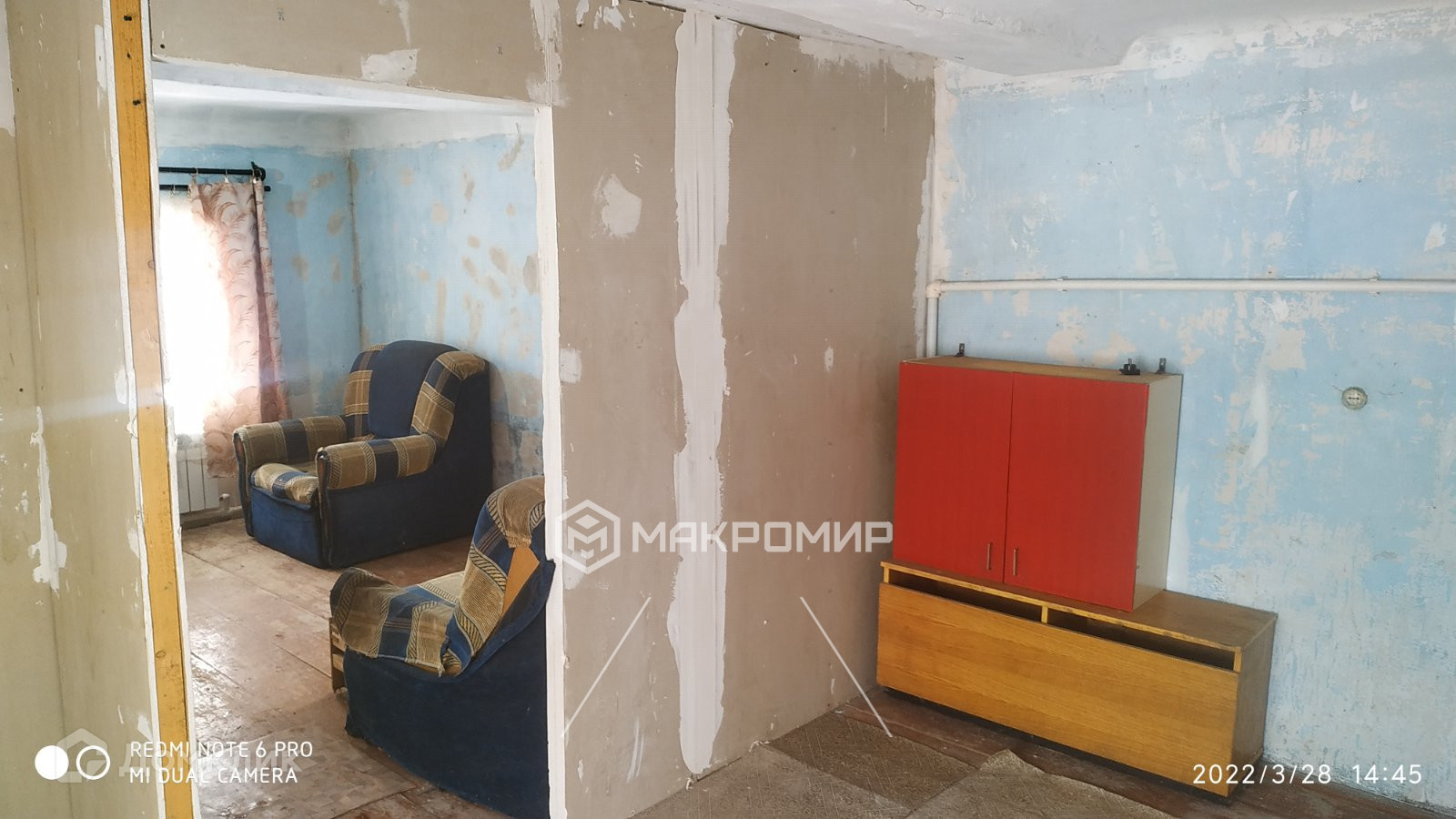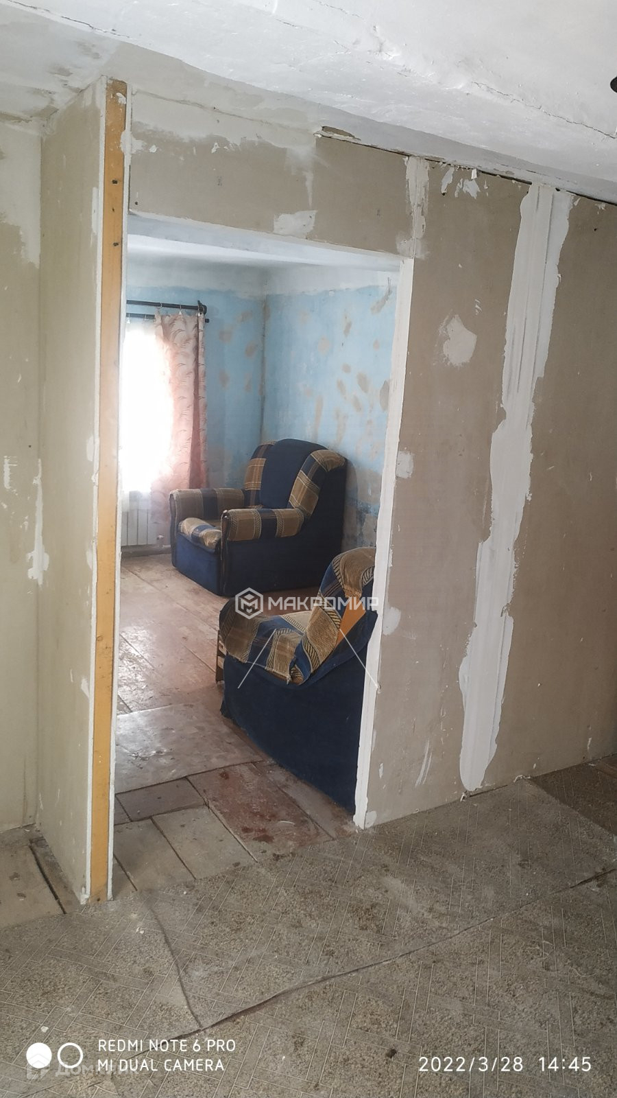 Внутри дома все подготовлено для поклейки обоев, полы ровные, стены поштукатурены.