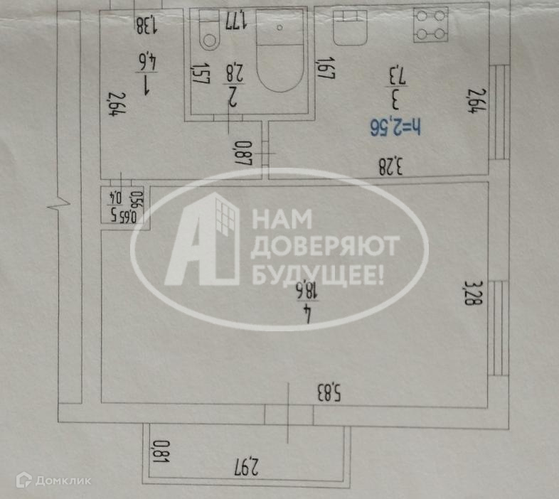 Общая площадь 33.5 м2