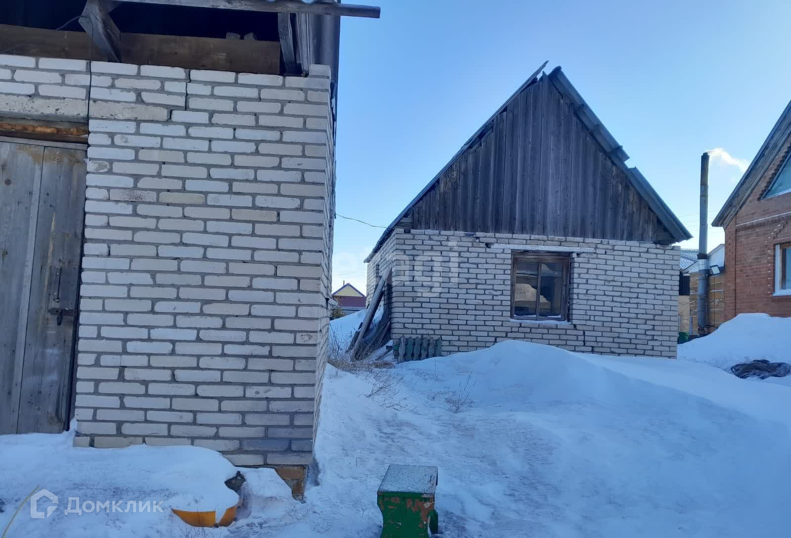 На участке большой гараж 35 м2 со смотровой ямой, под грузовик, подходит для СТО.