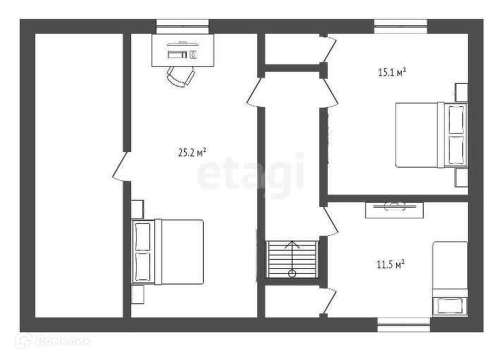 На 2 этаже – 2 спальни, подсобное помещение, санузел.