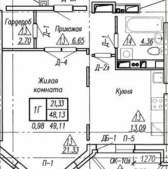 Общая площадь 49.1 м2