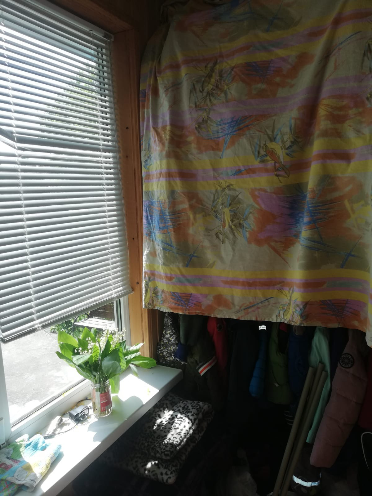Косметический ремонт, поменяли трубы на пластик, тёплый балкон с подвалом ( на полу линолеум, вагонкой зашиты стены) окна пластик
