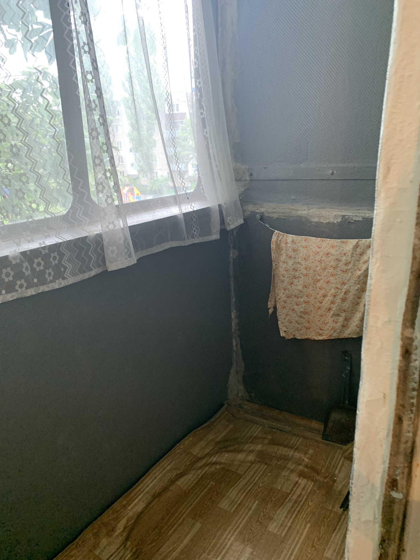 Балкон застеклен, есть общий коридор на двух соседей, во дворе всегда есть парковочные места