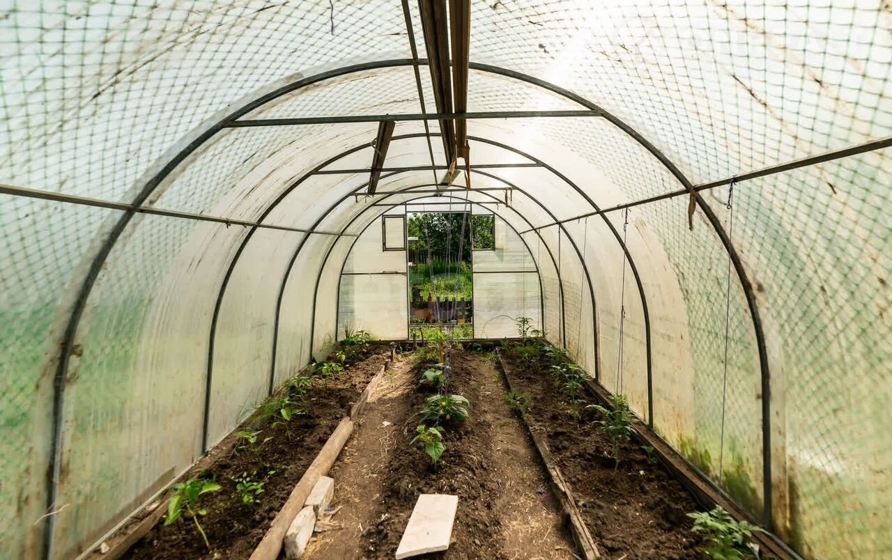 На участке также есть баня, сарай, арочная теплица из поликарбоната и уличный туалет.