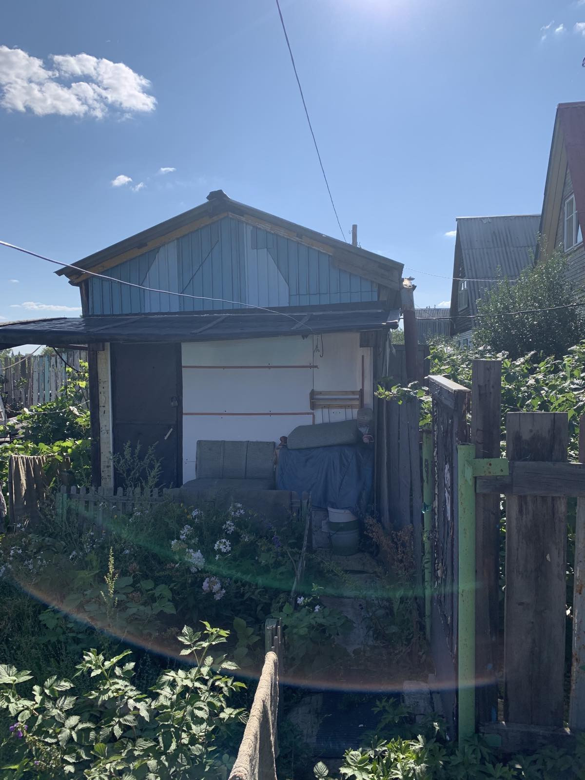 Есть гараж, банька, насаждения. Место хорошее, рядом мкр Пригородный,