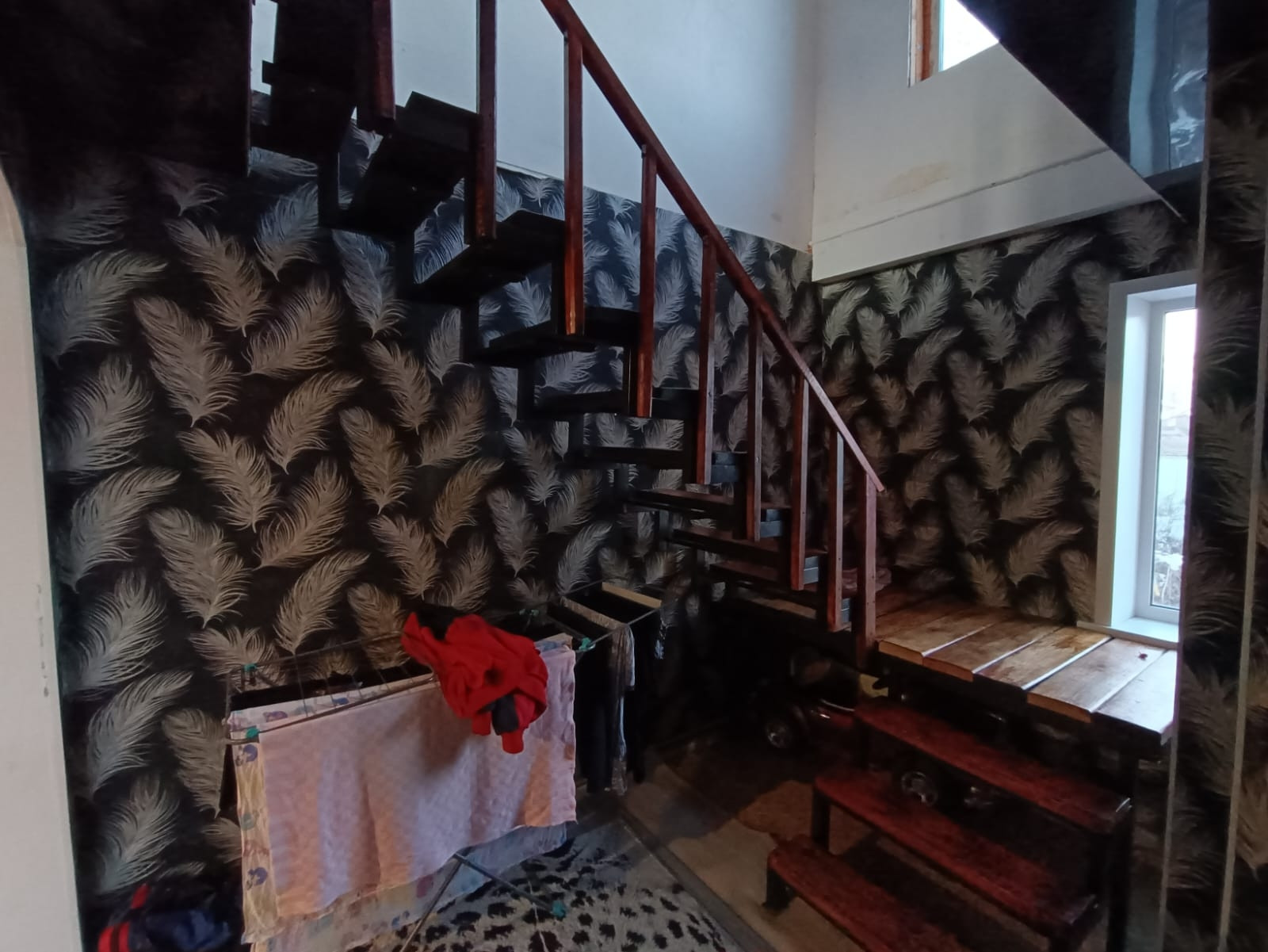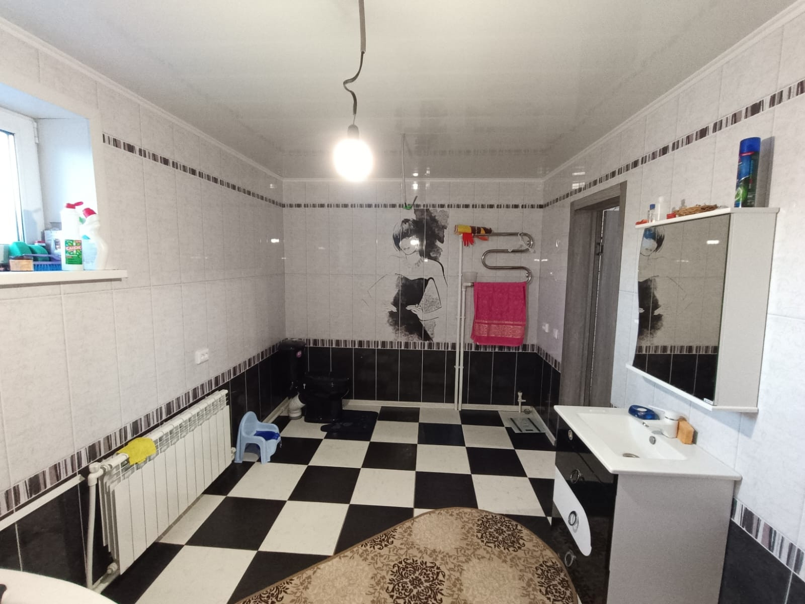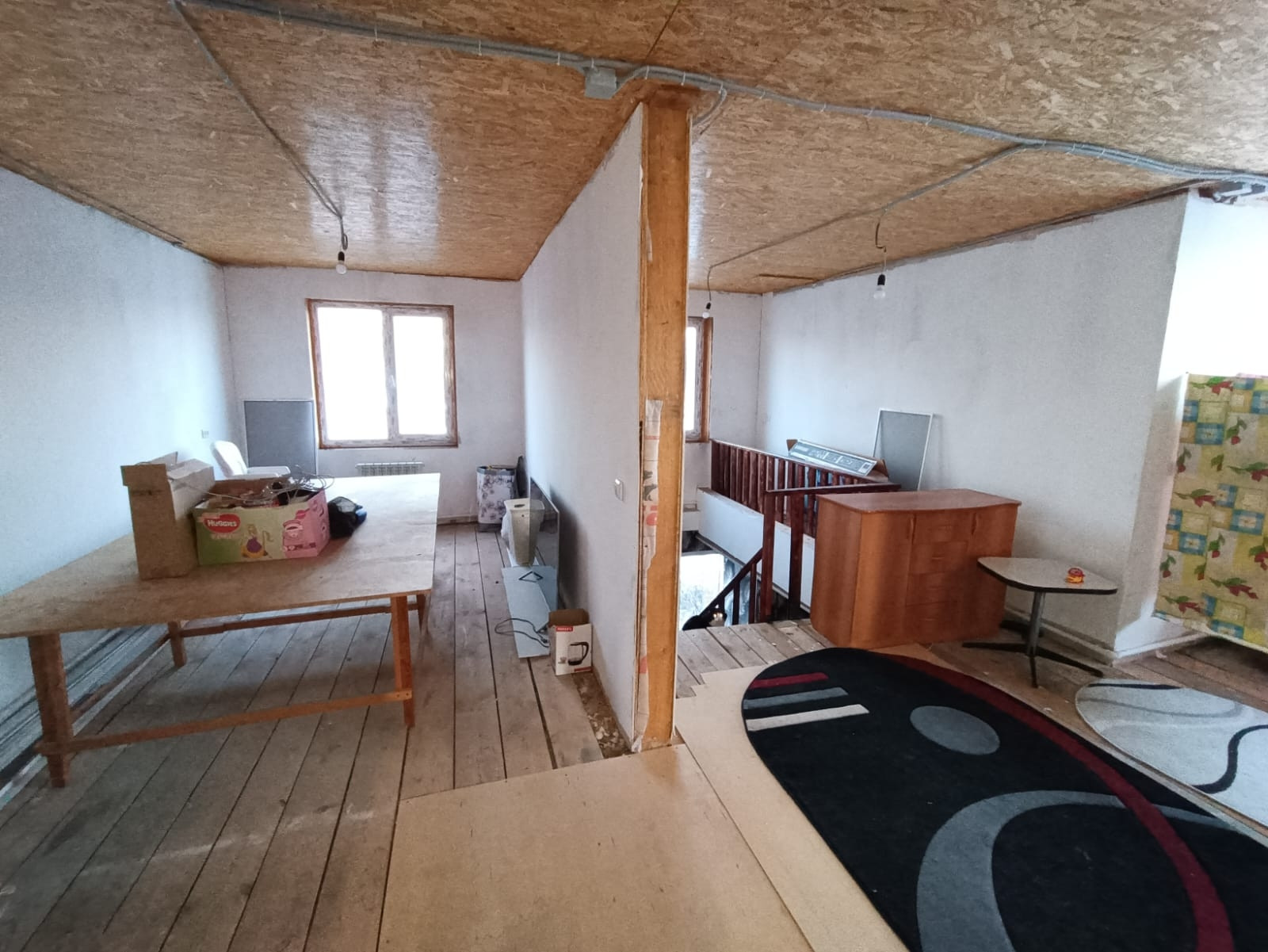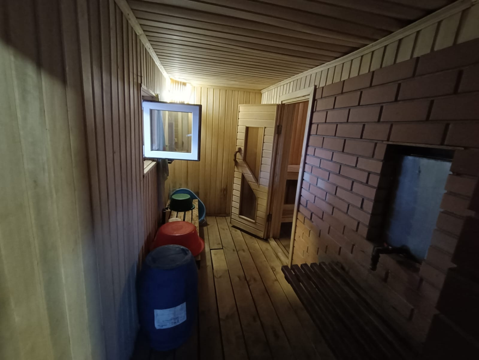 баня 6 на 4 сделанная под сауну ..все новое полностью. Ванна и туалет совмещён, котловая , 5 комнат и кухня. На первом кухня +зал ,спальня, на втором зал и две комнаты.