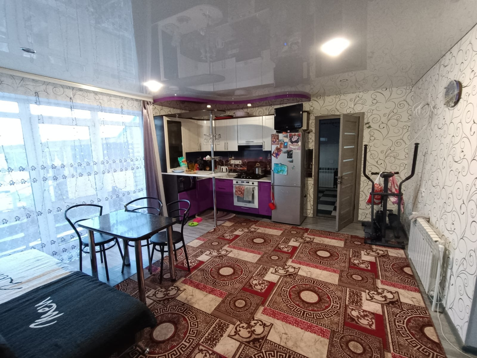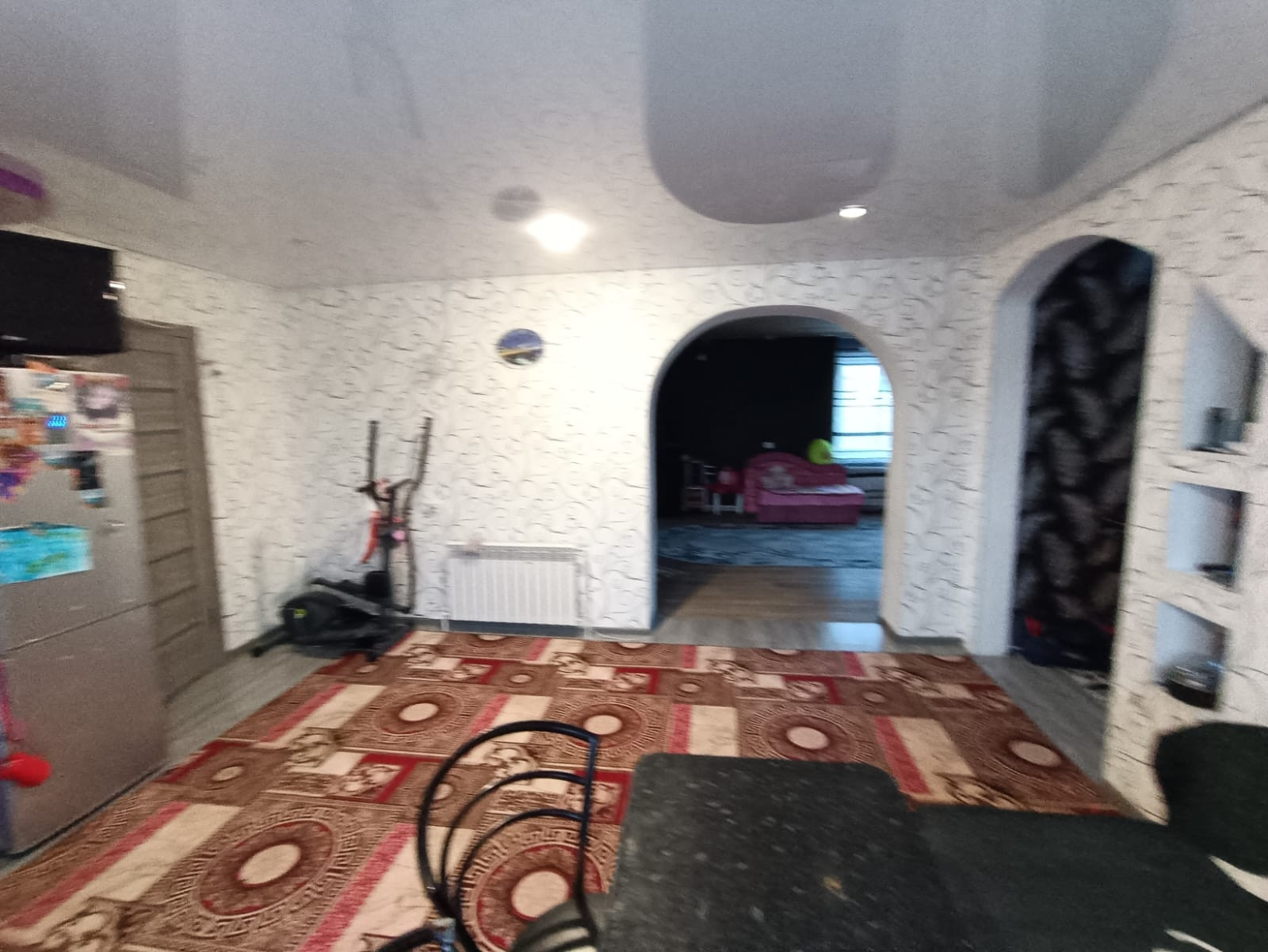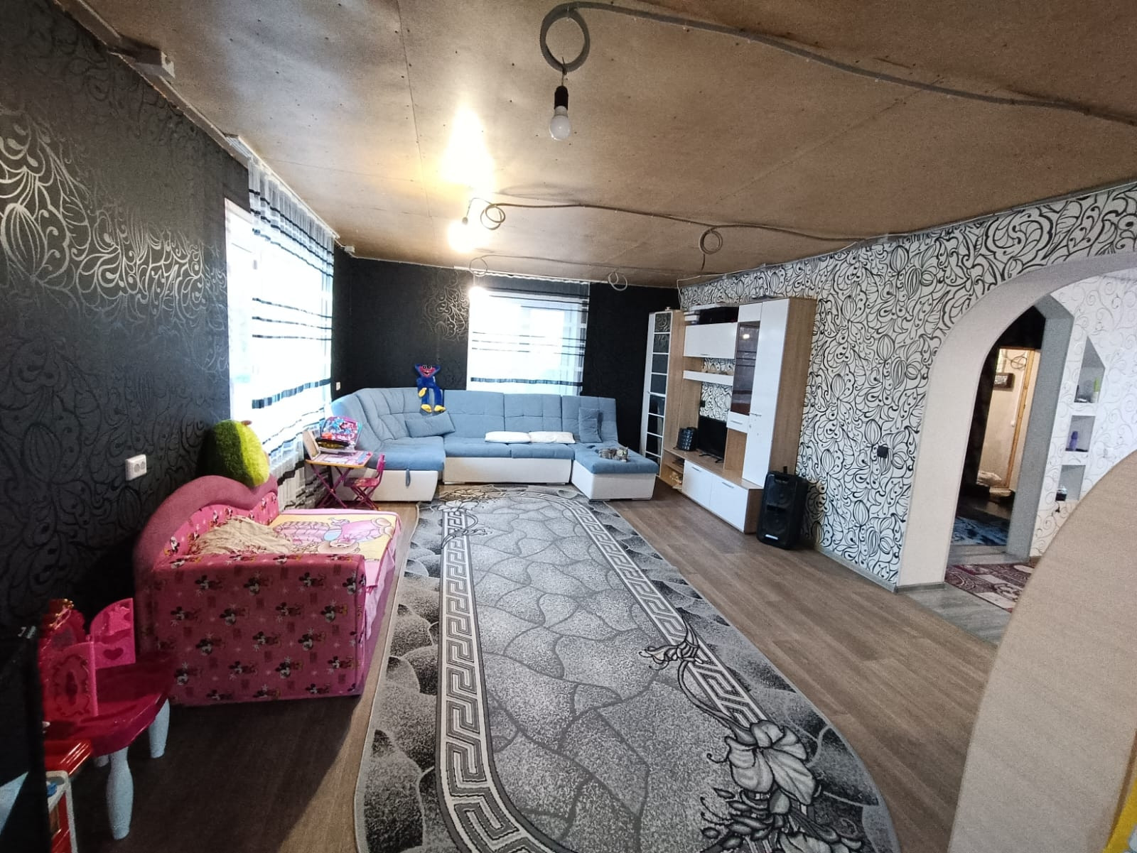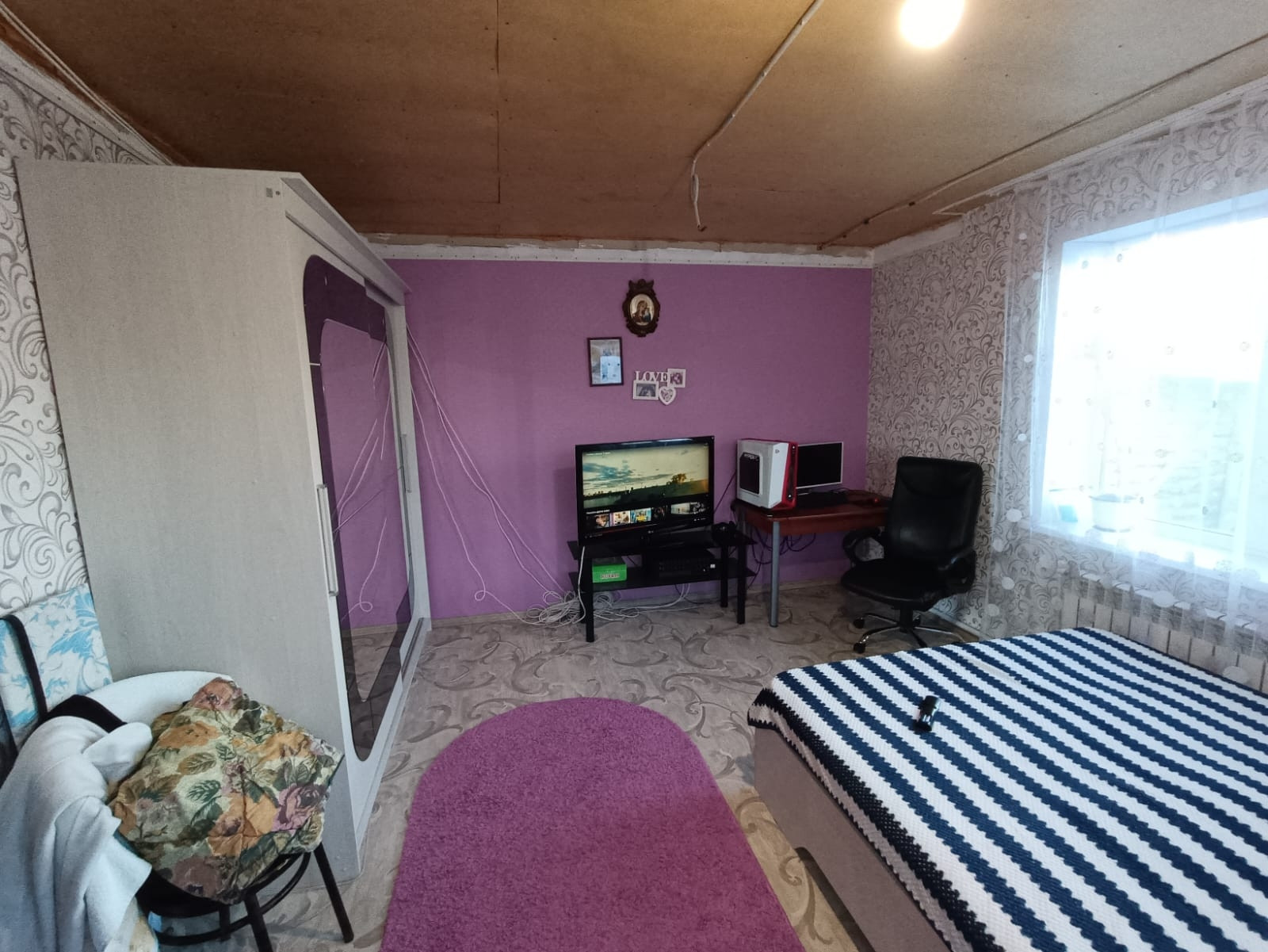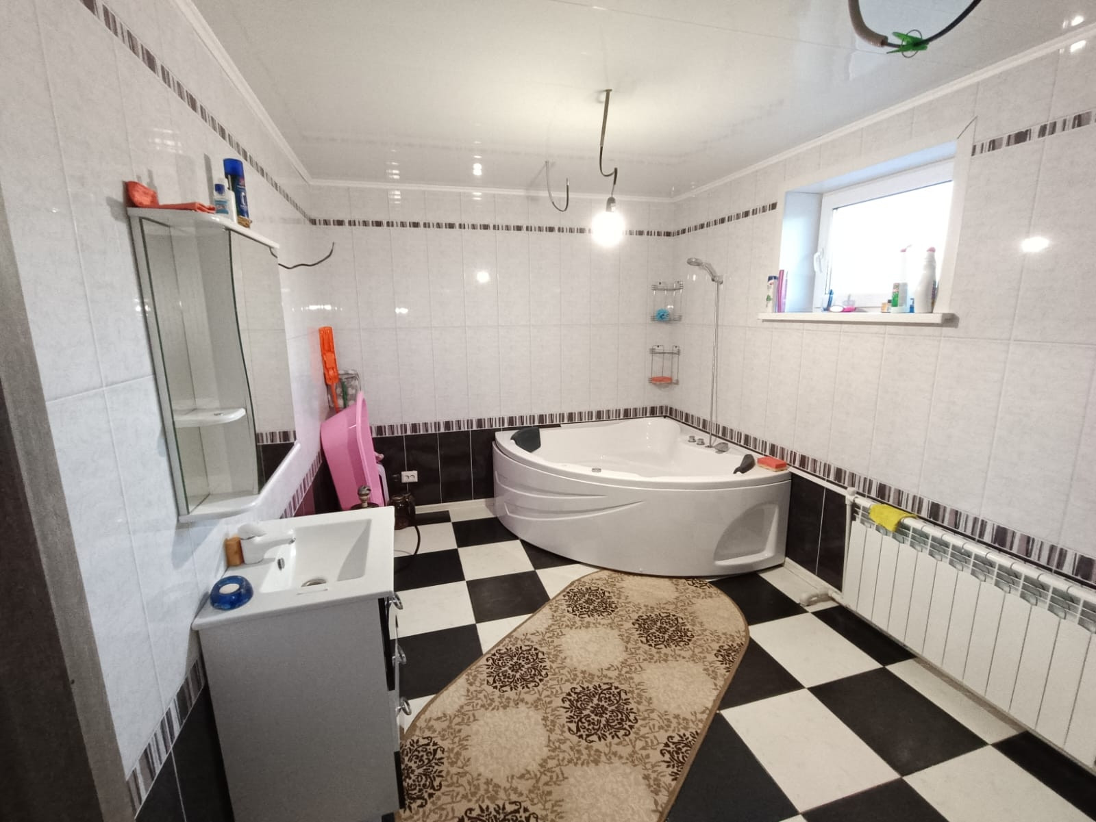 баня 6 на 4 сделанная под сауну ..все новое полностью. Ванна и туалет совмещён, котловая , 5 комнат и кухня. На первом кухня +зал ,спальня, на втором зал и две комнаты.