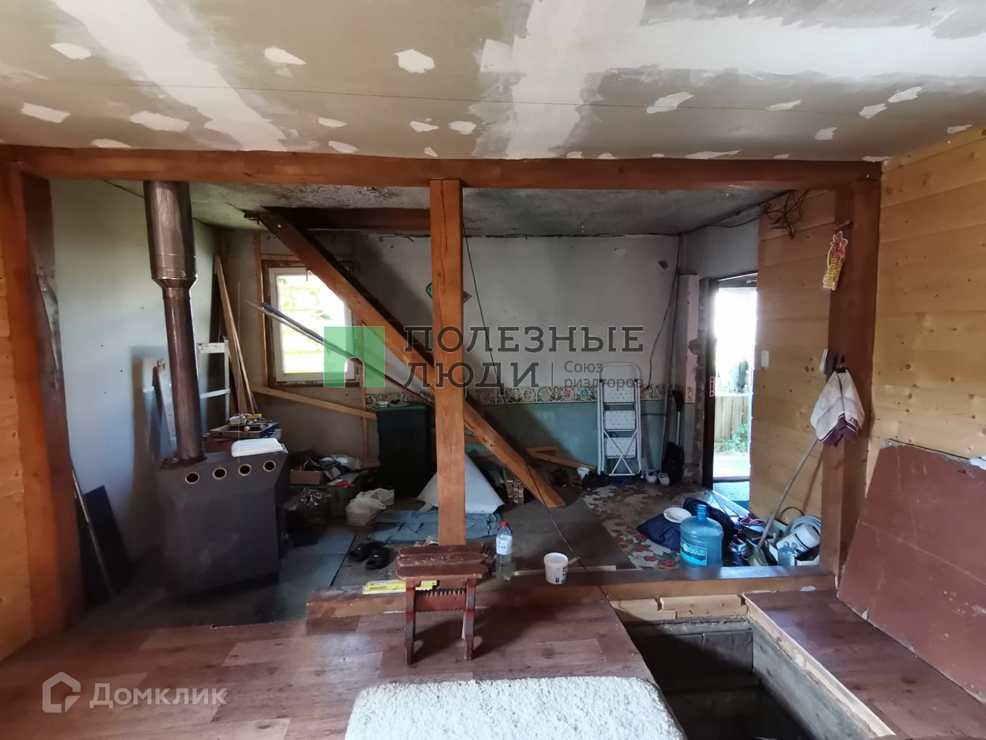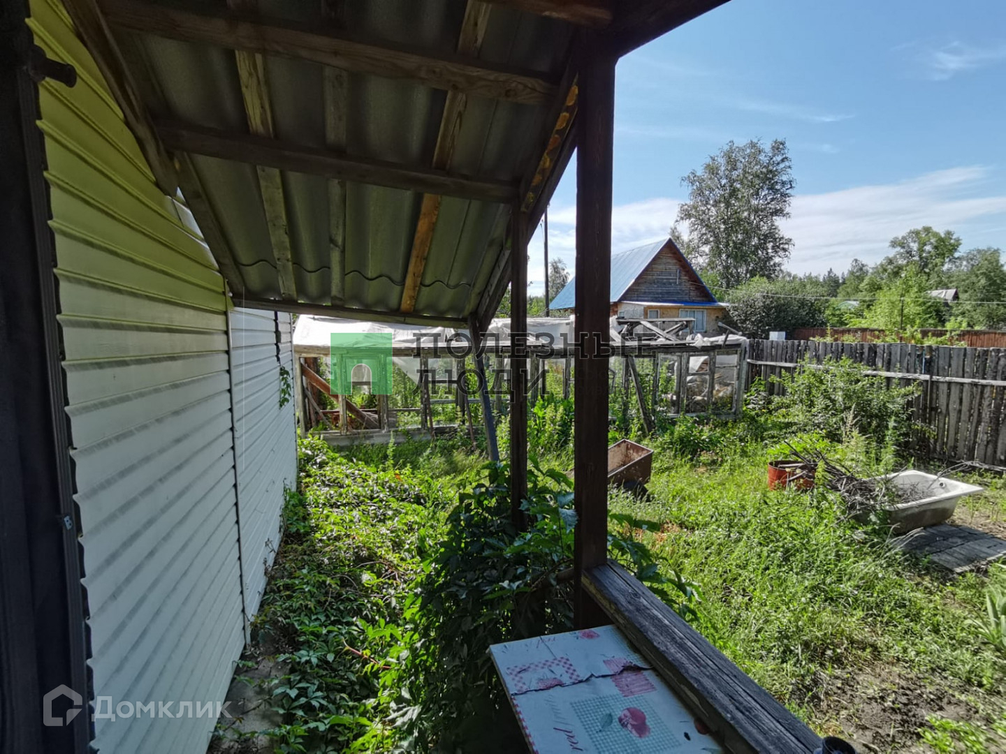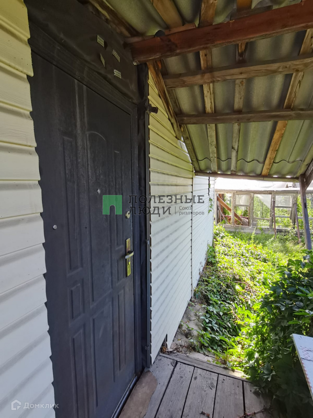 Дом площадью 43,4 кв.м, построен из железобетонных панелей, утеплен минватой и обшит сайдингом. На первом этаже 1 комната, еще одна комната на мансардном этаже. Отопление печное. Статус дома – жилой, с возможностью городской прописки.