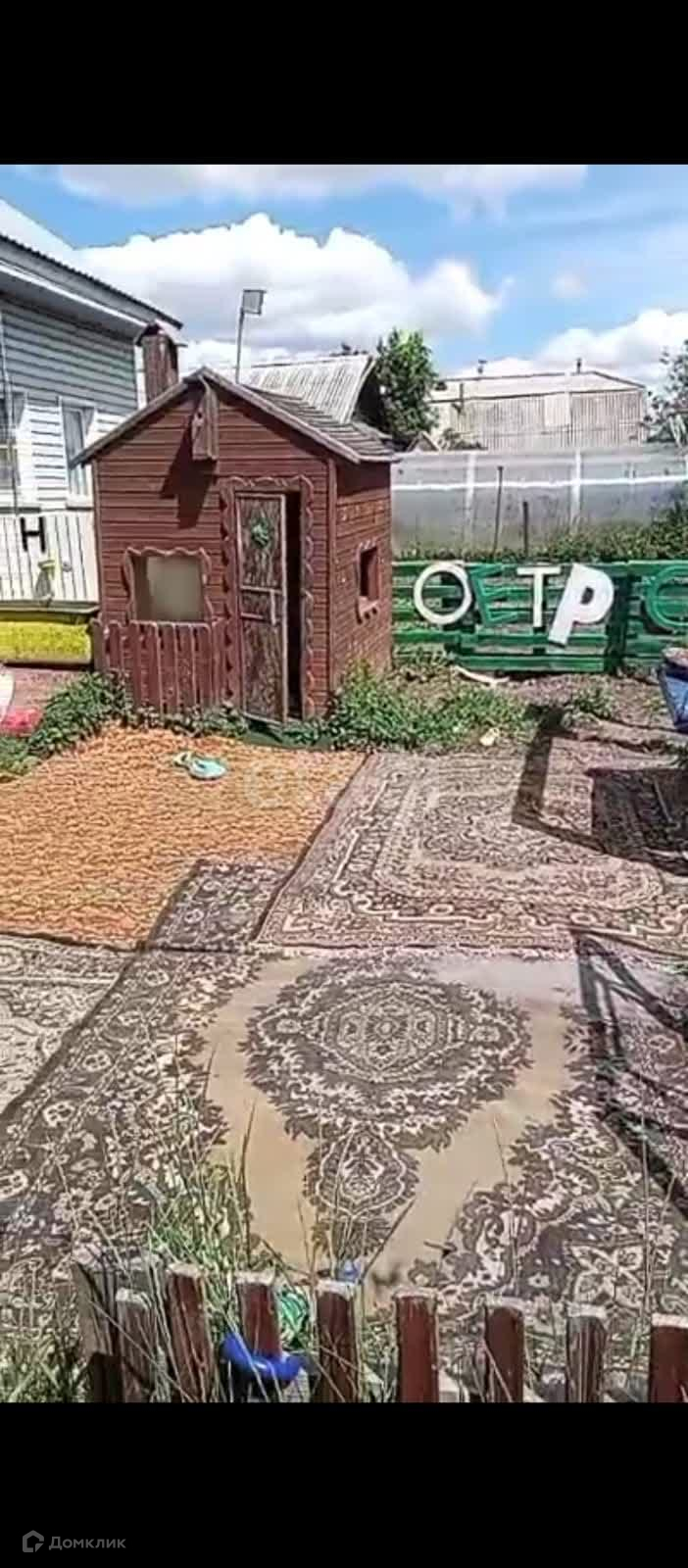 На участке огород, все растет и плодоносит, добротная деревянная баня(в бане жара), беседка, колодец, множество надворных построек, навес под машину, хорошая детская площадка, с песочницей качелями, домиком и т.д.