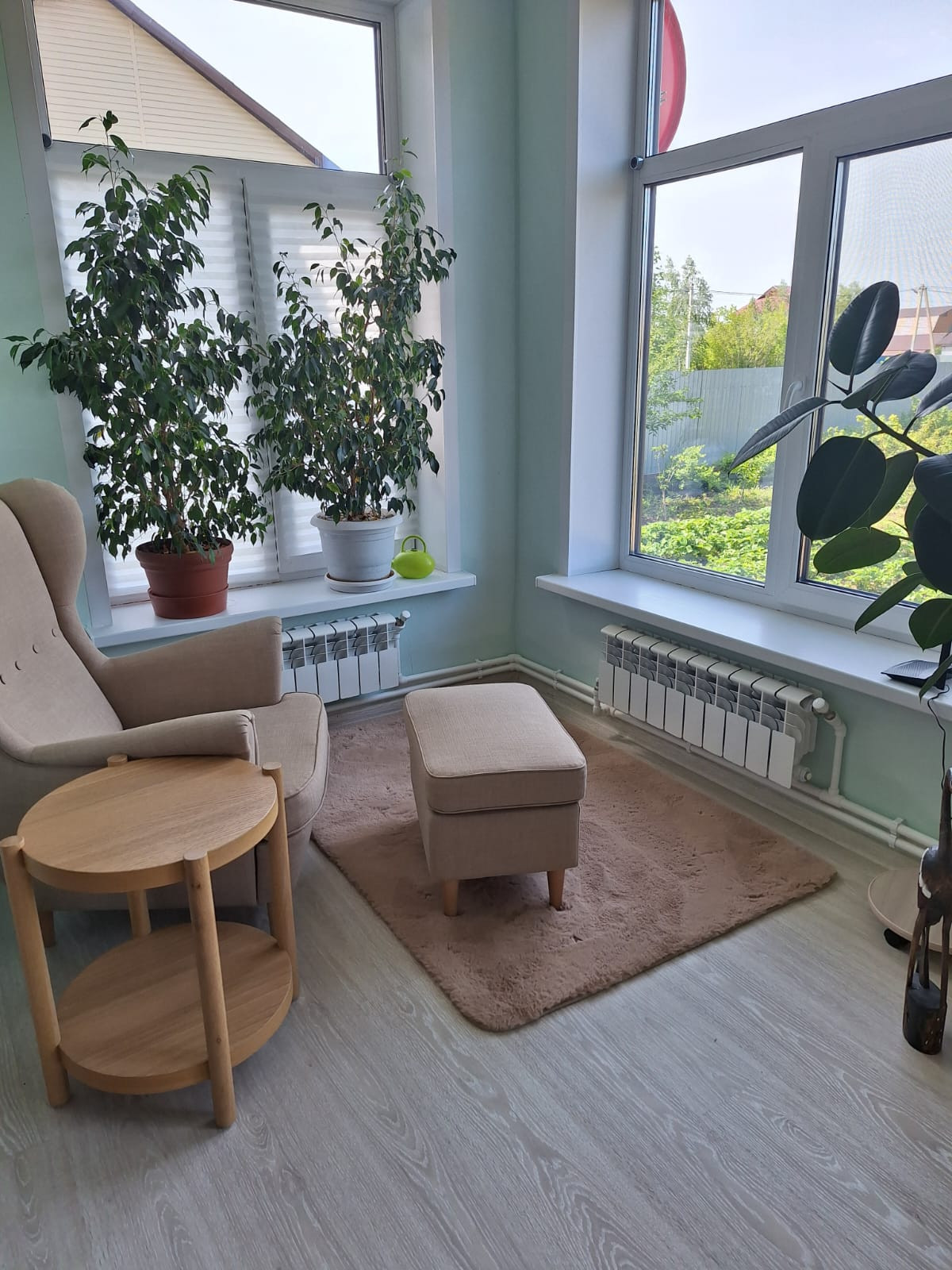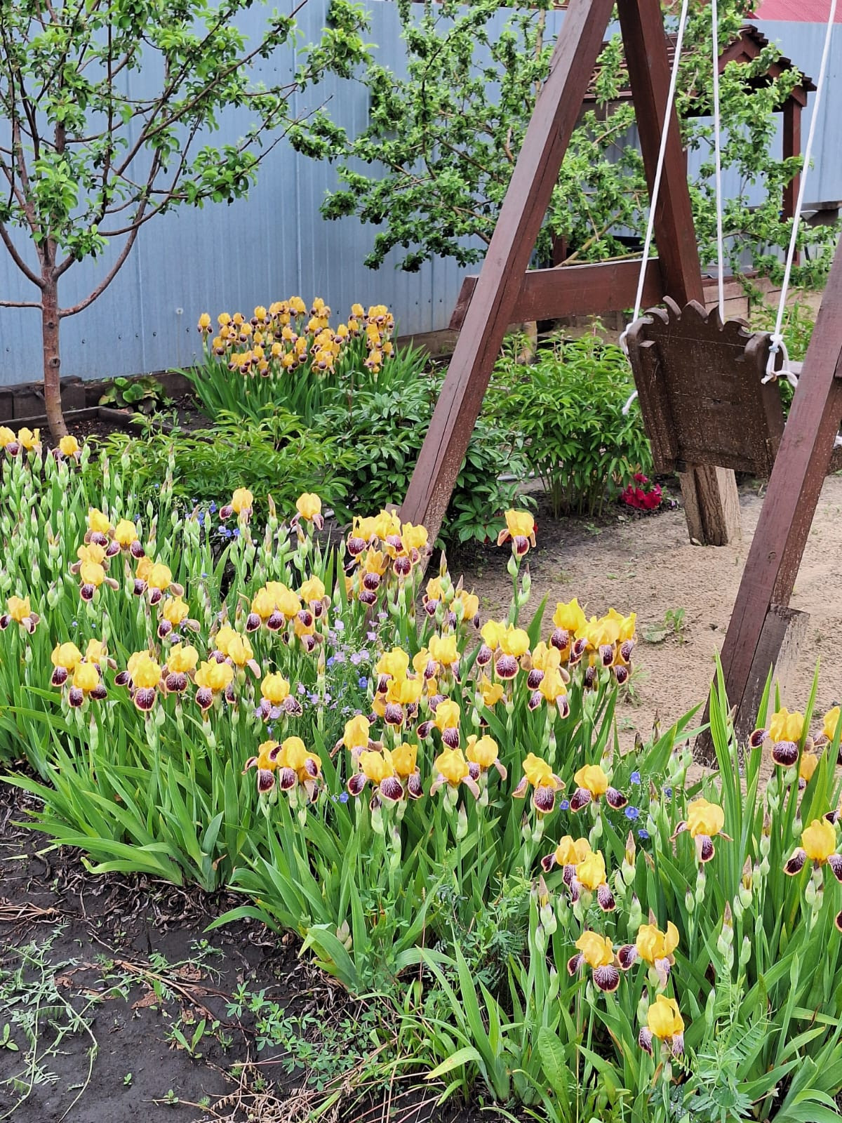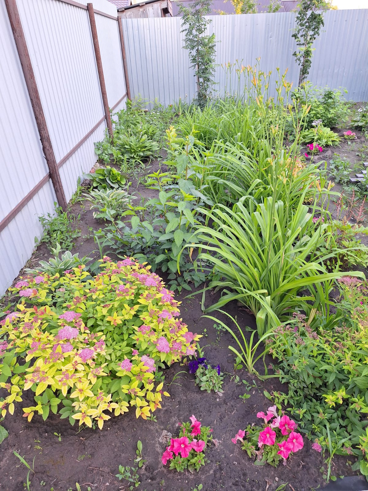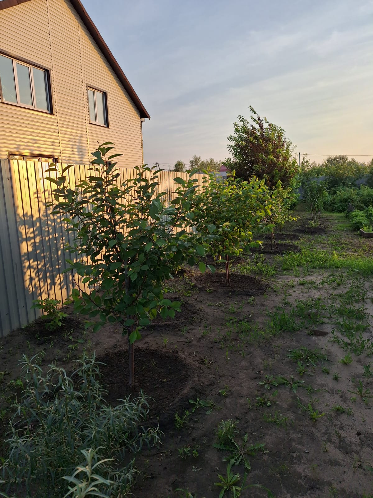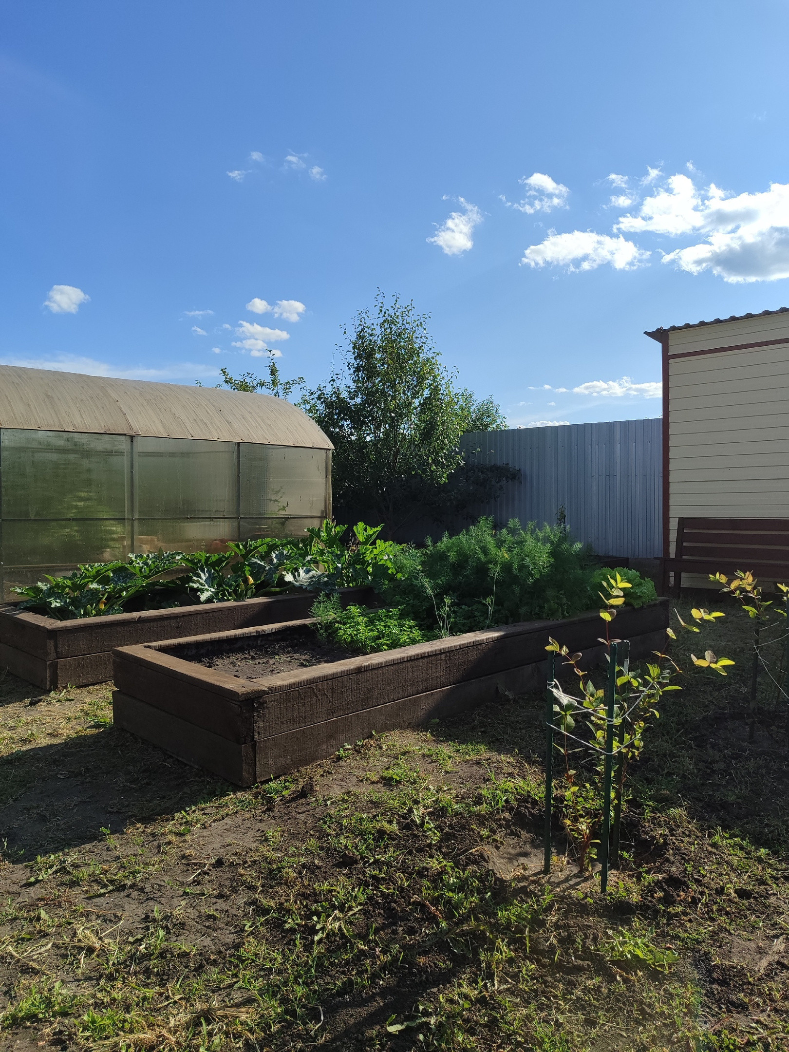 На ухоженном участке приносят плоды: 8 яблонь, 4 груши, 9 вишен, малина, смородина, виктория, облепиха, голубика, жимолость, также цветут гортензии, и множество декоративных растений.