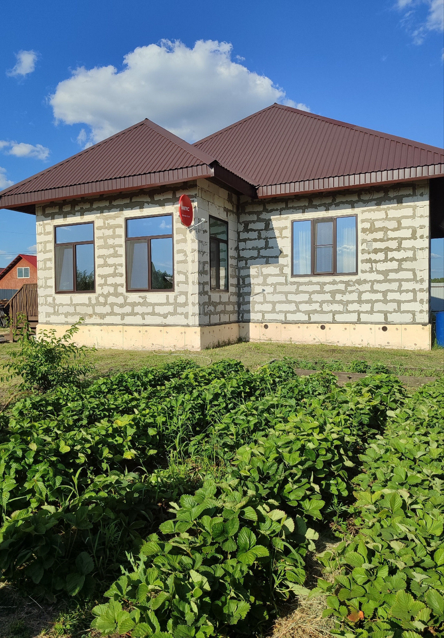 Дом с двумя входами, построен в 2021 из газоблоков, состоящий из двух комнат 15 и 16 кв. м., кухни - гостиной с террасой 36 кв. м. с видом на плодово-ягодный сад, большим санузлом, котельной и помещением под сауну.
