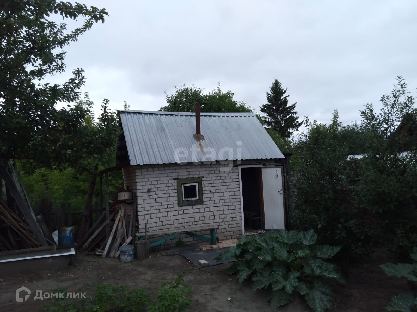 Есть кирпичный домик, баня, теплица.