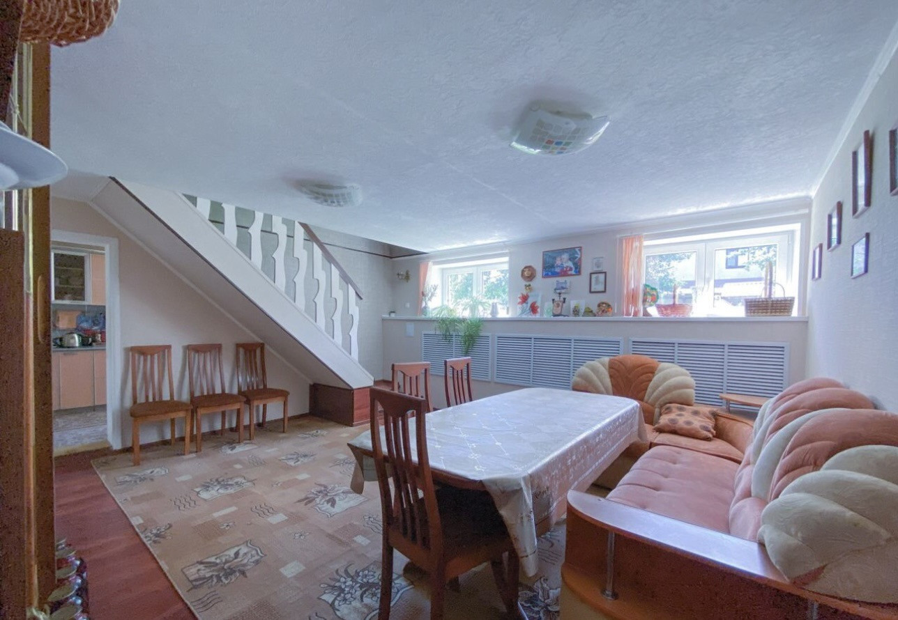 Продаётся дом 2000 года постройки. Фундамент ленточный (ФБС 5,6, четыре ряда), плиты перекрытия. Цокольный этаж смонтирован из стеновых панелей толщиной 400 мм, перекрыт плитами перекрытия. С лицевой стороны оштукатурен короедом, окрашен. В цокольном этаже расположены: котельная 11м2 оборудованная котлом на твёрдом топливе и газовым котлом, системой водопадачи , (скважина 20 метров расположена во дворе дома)., кухня 12 м2, столовая 23 м2, кладовая 12 м2 с погребом расположенным на глубине около 3 метров, также в цокольном этаже есть помещение спорт зала площадью 40 м2, без оборудования ( идеально подойдёт для размещения бильярда, кинозала), высота потолков более 2.5 м.