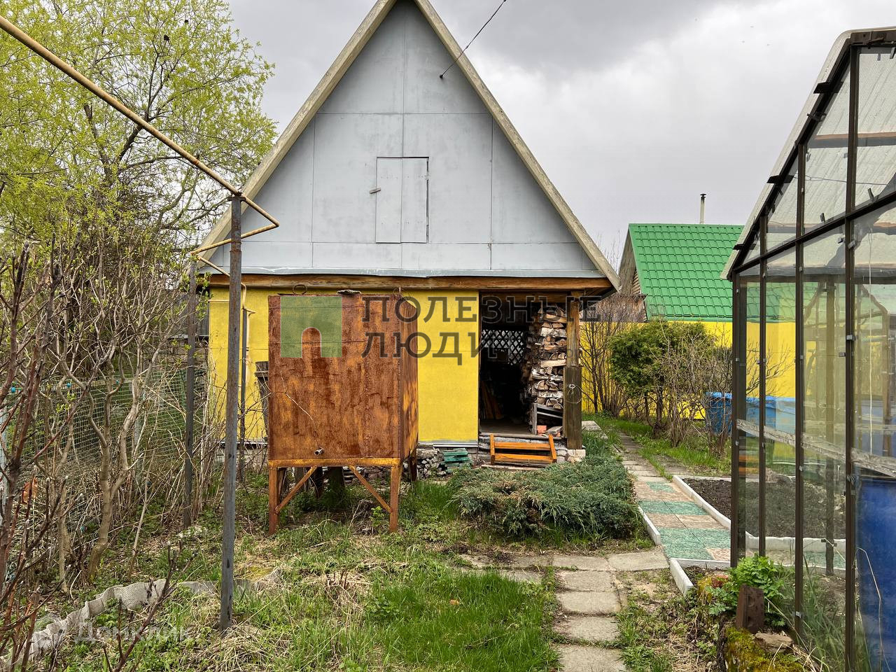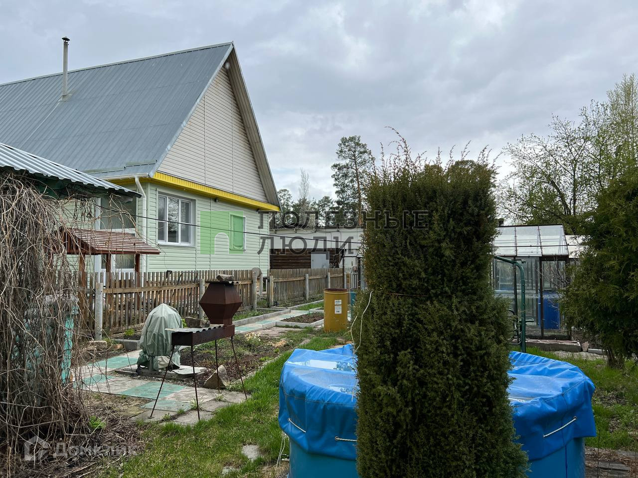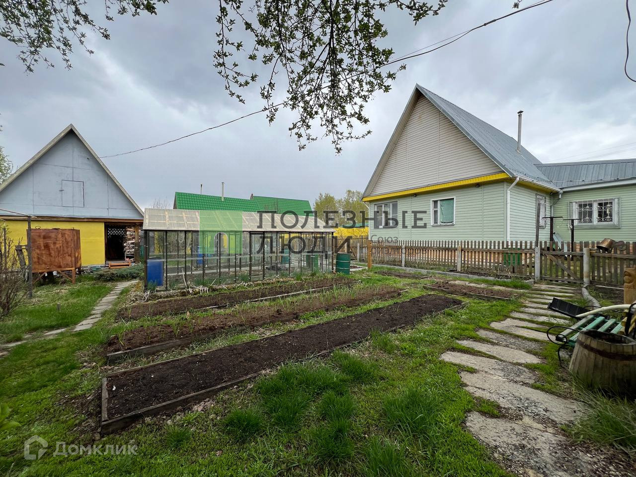 на участке имеются постройки: баня с газовым отоплением зоны отдыха ( газовый конвектор), капитальный гараж на 2 автомобиля из газобетона + еще один металлический  гараж для автотранспорта, отдельный погреб с вентиляцией для хранения урожая, теплицы и отдельно стоящие подсобные помещения для содержания домашней птицы;