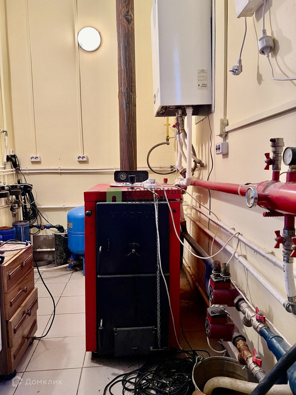 дом отапливается итальянским двухконтурным газовым котлом + имеется резервный дополнительный котел работающий на твердом топливе, а также в доме есть 2 действующие дровяные печи;