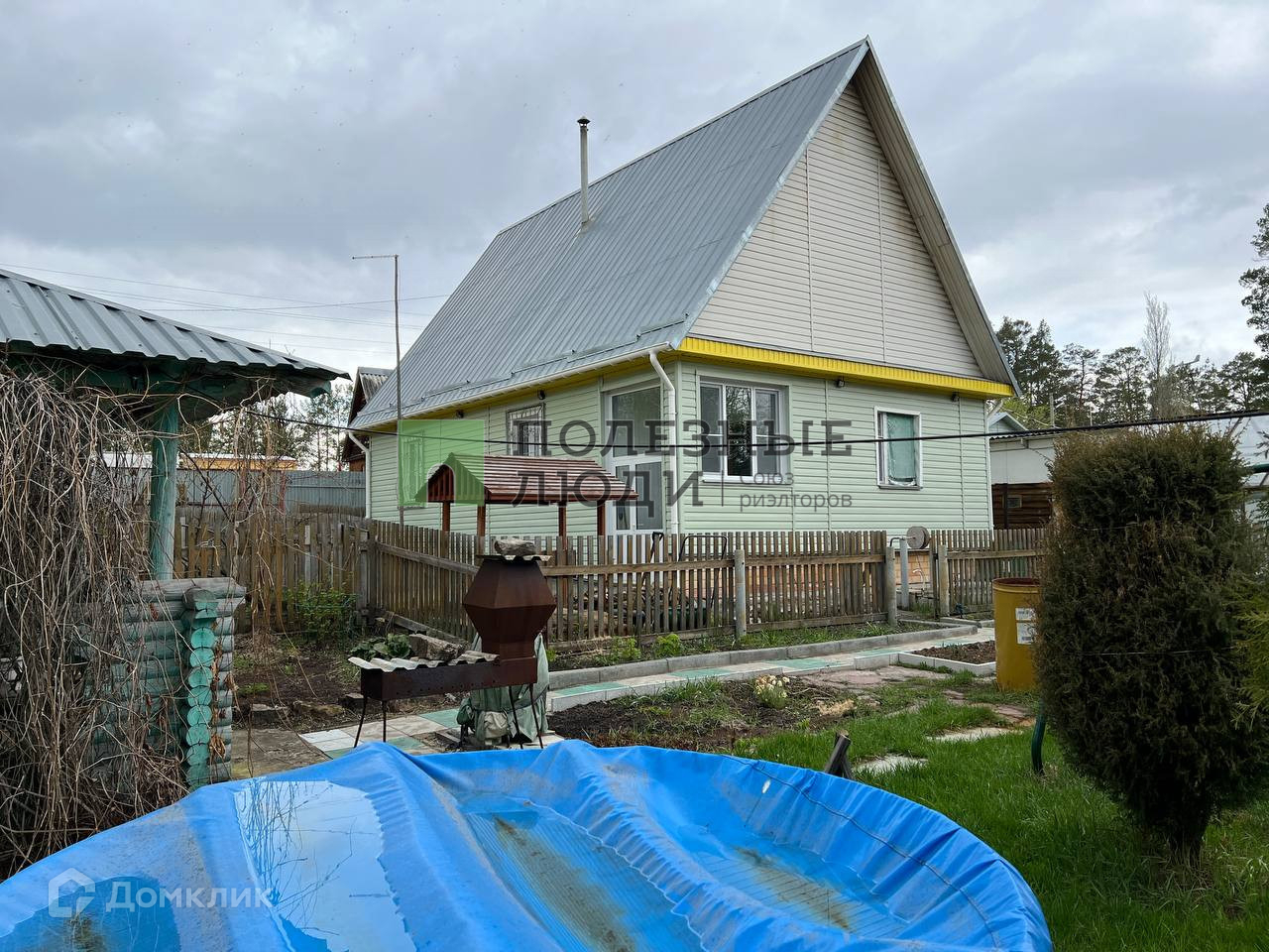 добротный бревенчатый дом 2005 года постройки снаружи по периметру обшит сайдингом;