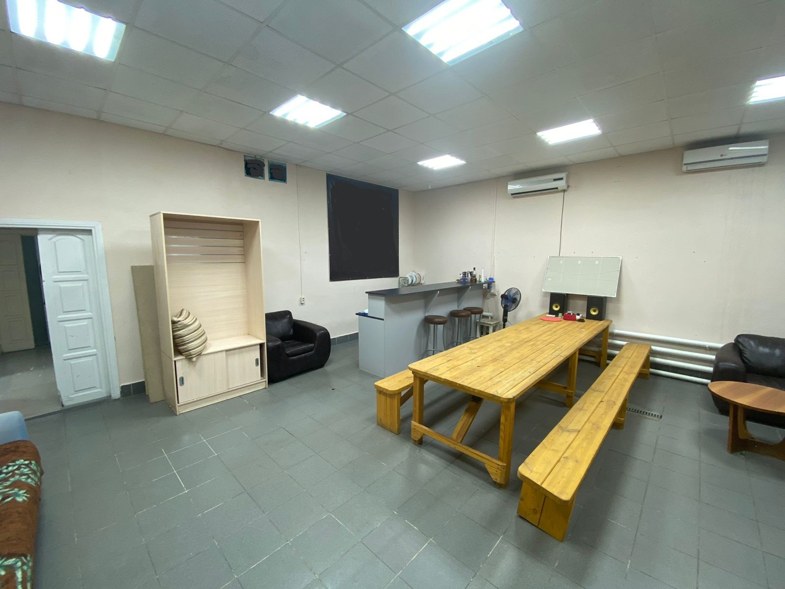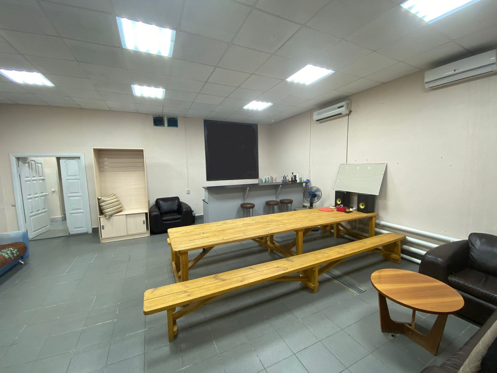 В доме две большие комнаты и много подсобных помещений, гараж.