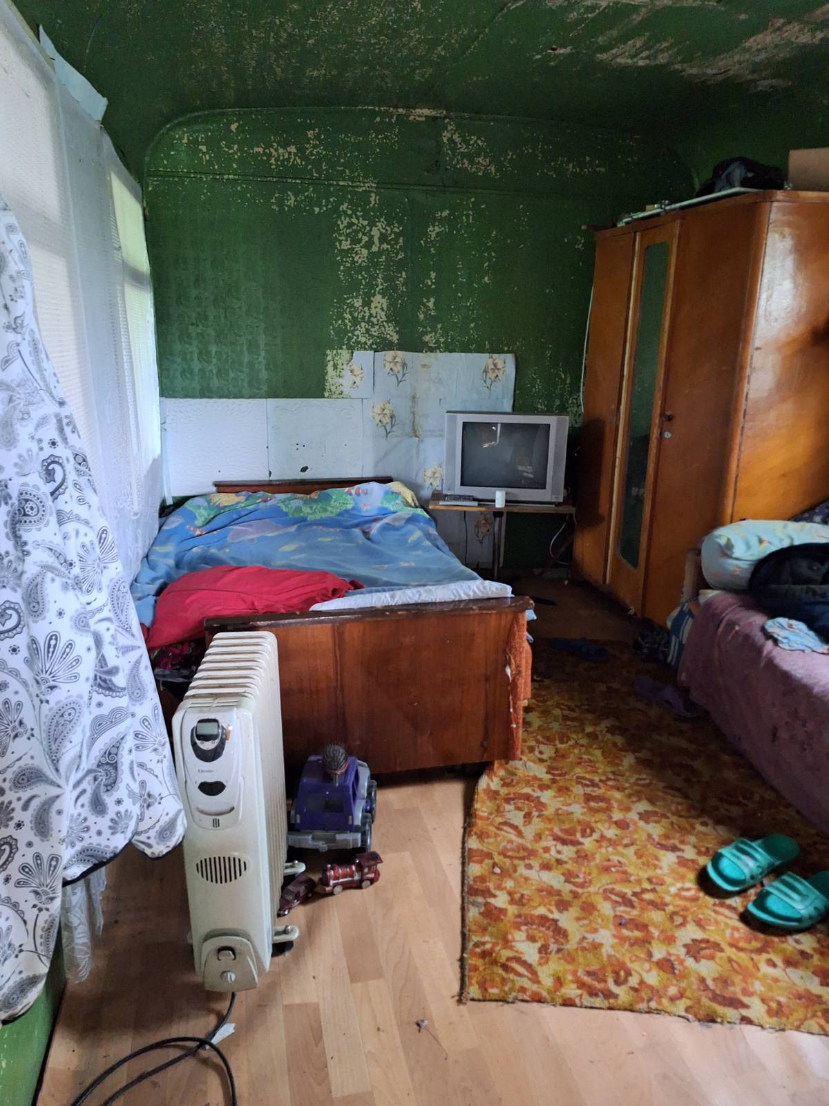 Продажа загородного домика, 2 ком+ кухня,печное отопление, электричество, газ проходит рядом с участком. Дом оформлен как не жилой(это строительный вагончик- обшитый), жить можно до глубокой осени-теплый. Рядом соседи проживают - круглогодично.