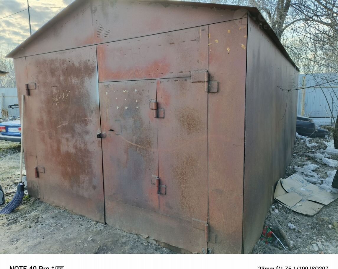 Продаю металлический гараж 6,15х3м, состояние хорошее. Уши для погрузки имеются, перевозится на трале, демонтаж с помощью крана(помогу с организацией перевозки). Изготовлен из листового металла и уголка в заводских условиях. Примерный год изготовления 1995г.