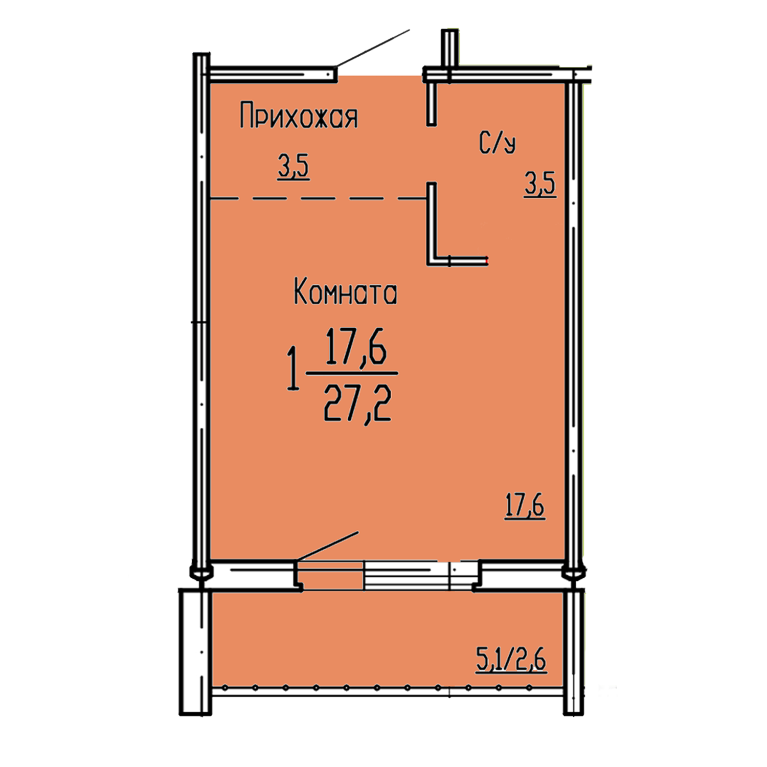 Общая площадь 27.2 м2